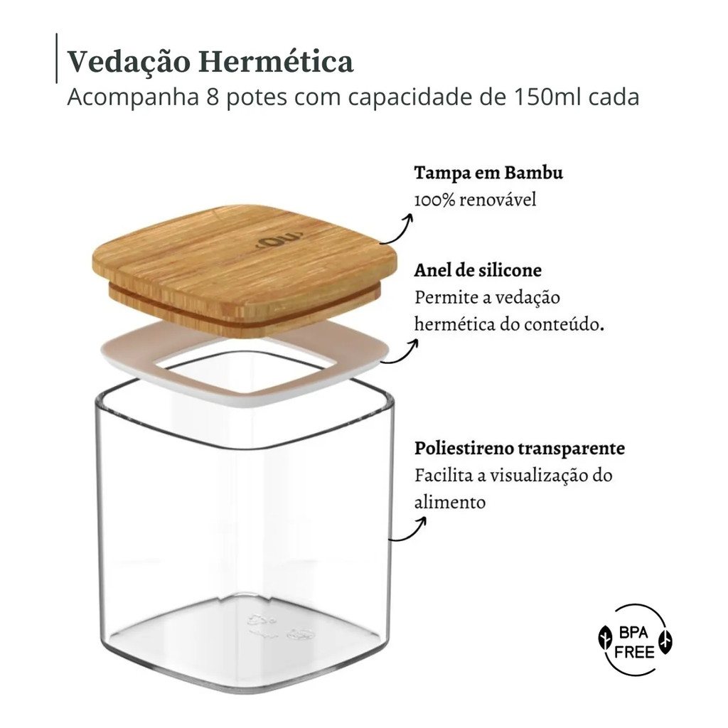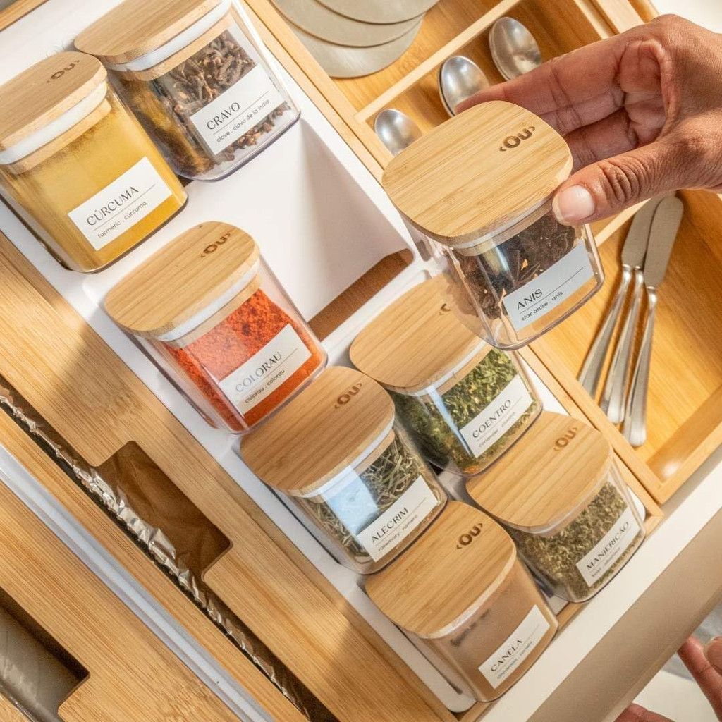 Organizador De Temperos Para Gaveta 09 Peças Bambu