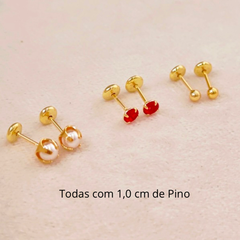 Brincos Infantis Variados Cartela com 3 Modelos Folheado a Ouro 18K - Hipoalergênico com Tarraxa Baby de Segurança