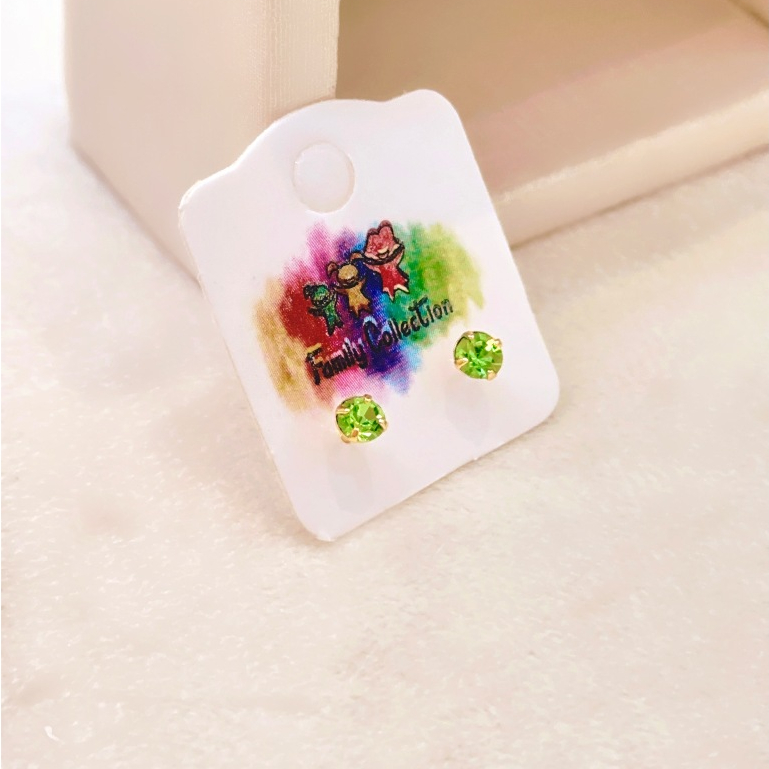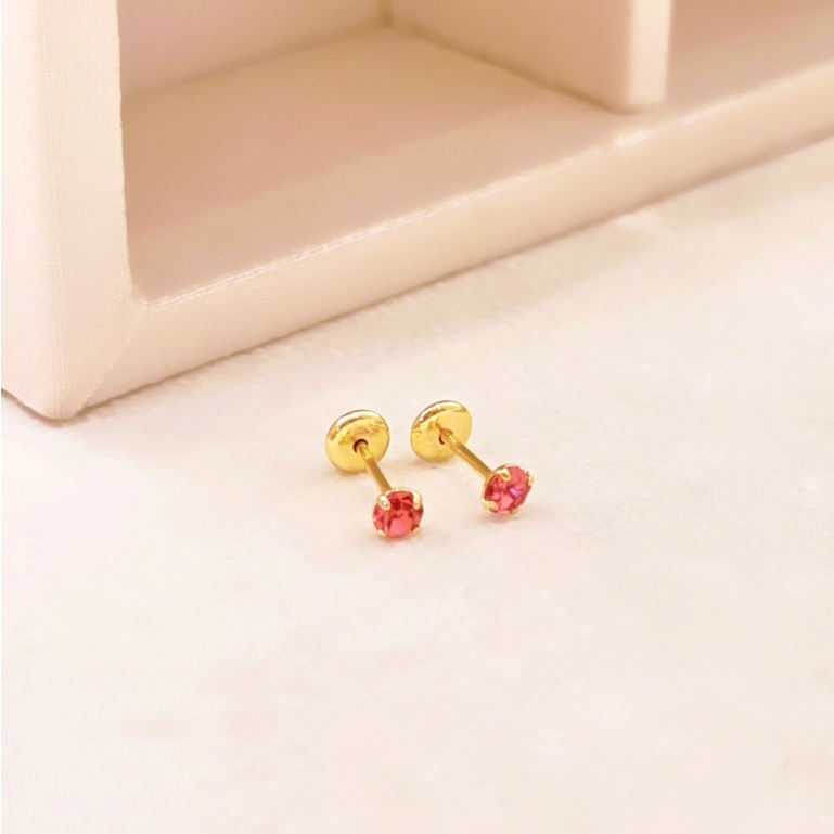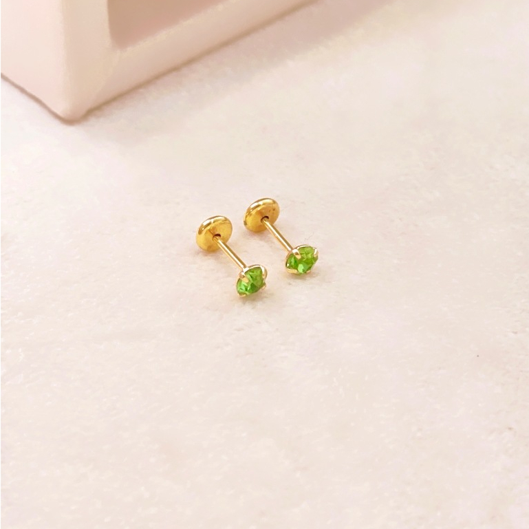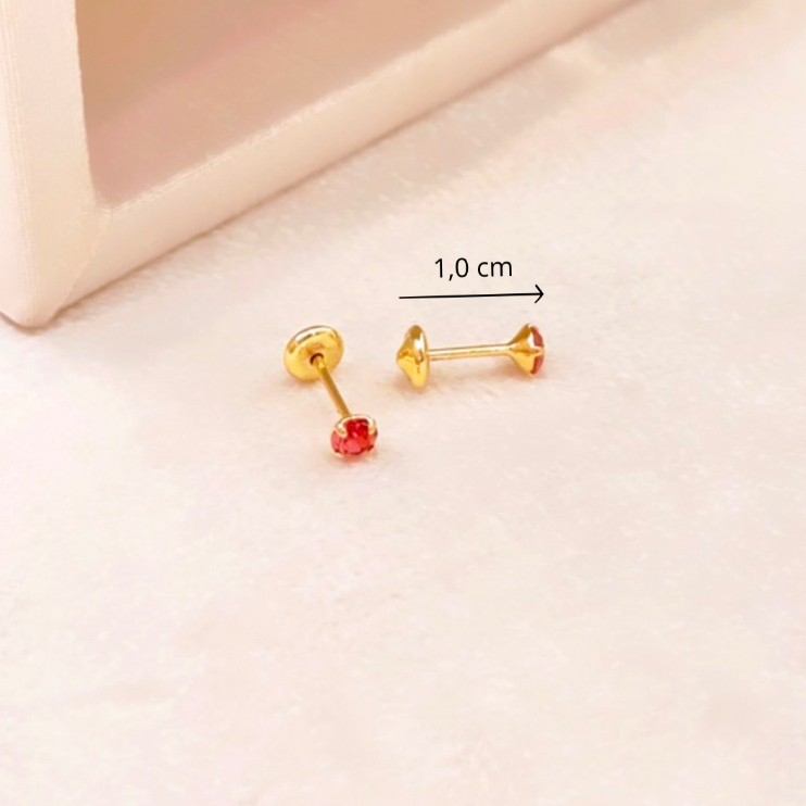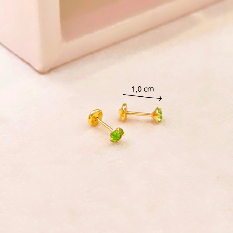 Brinco Infantil com Zircônia Rosa ou Verde Tamanho GG Folheado a Ouro 18K - Hipoalergênico com Tarraxa Baby de Segurança