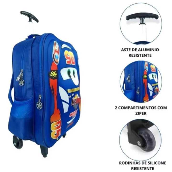 Kit Mochila Infantil De Rodinhas 3D Alto relevo Macqueen Mc05005 reforçada