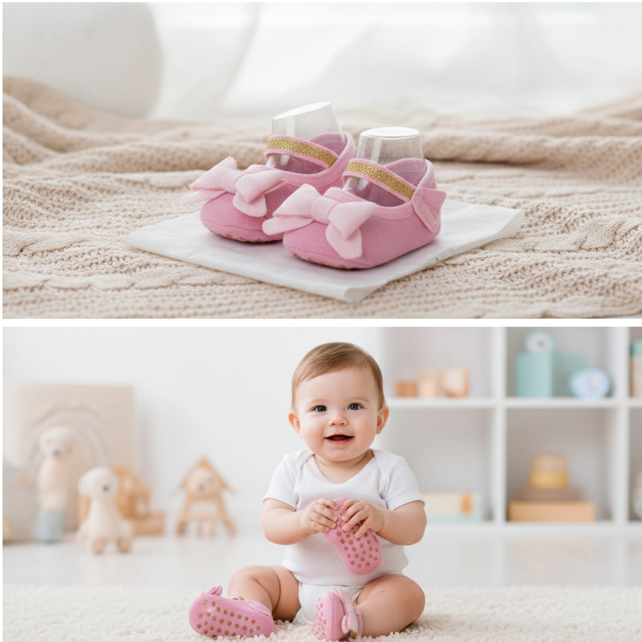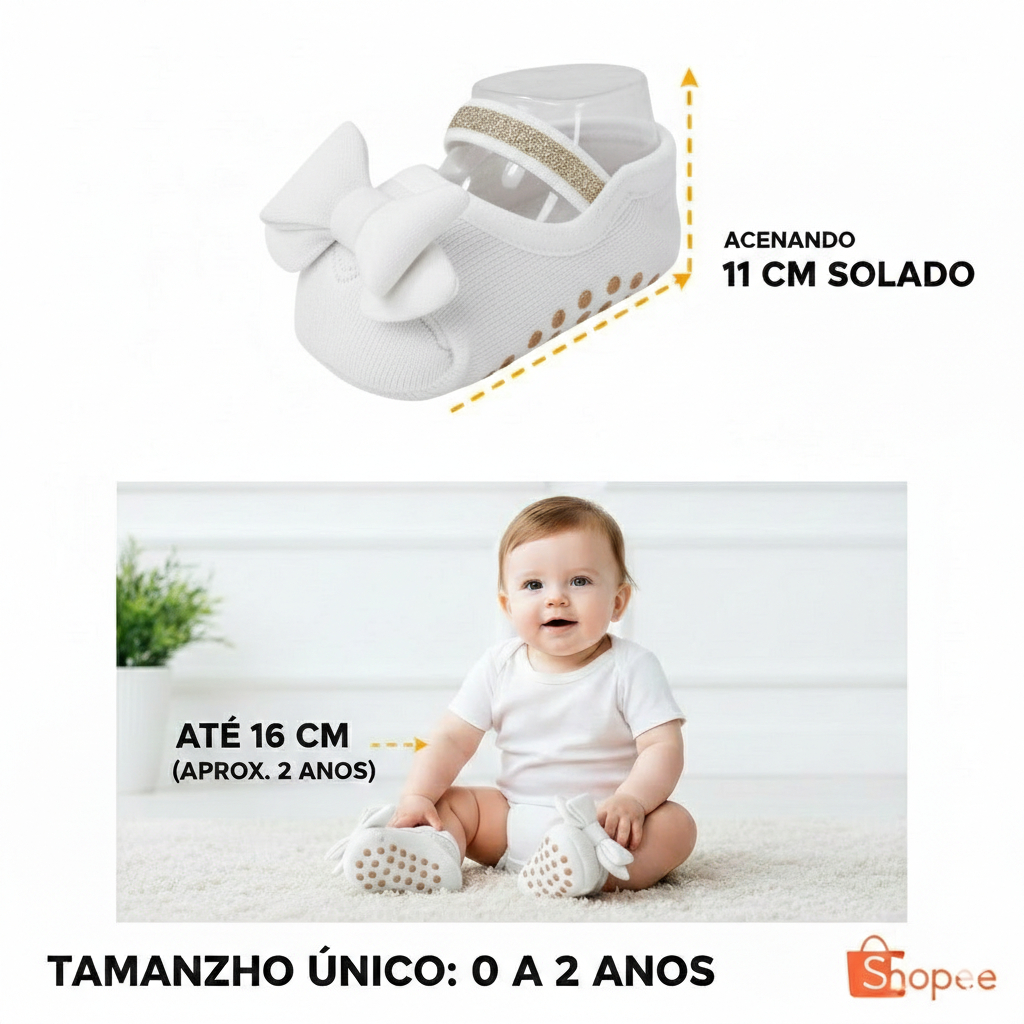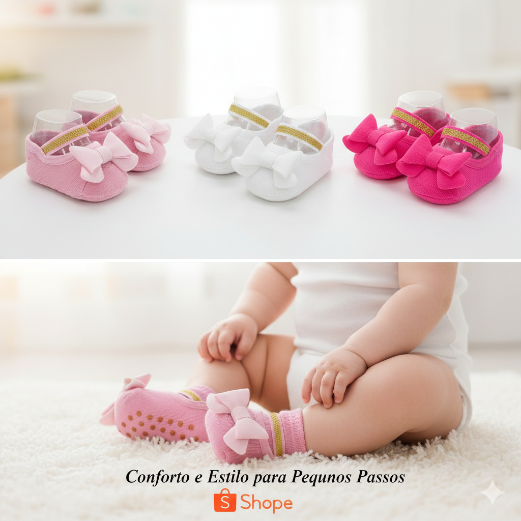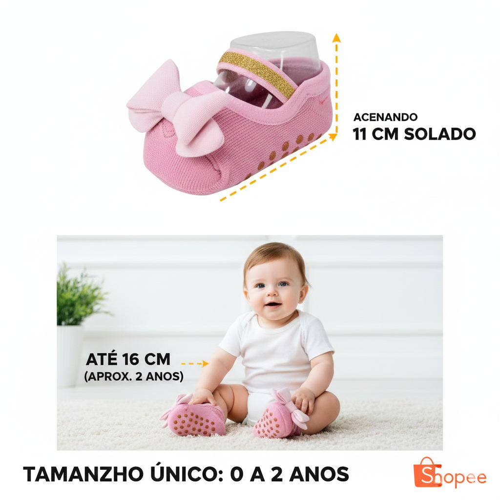 Sapatilha Meia Bebê Menina Algodão Antiderrapante 0 a 2 Anos