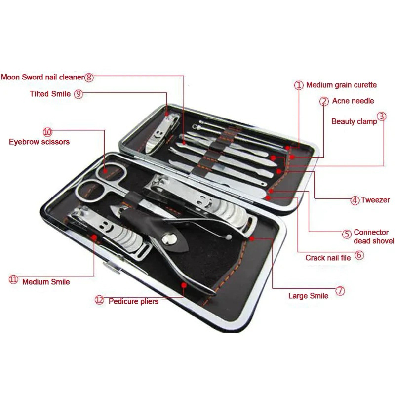 Kit Cortador De Unha Manicure Portatil Estojo Pinca Tesoura 12 peças