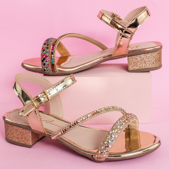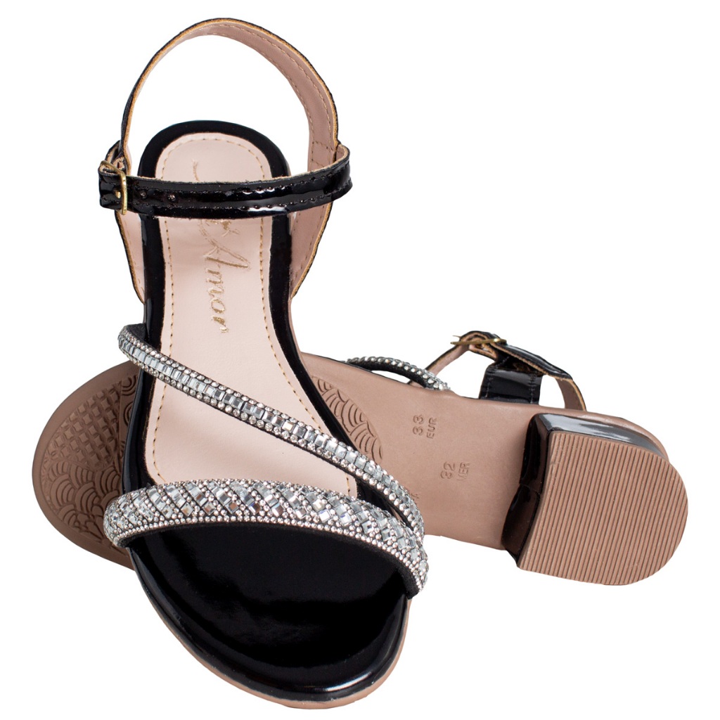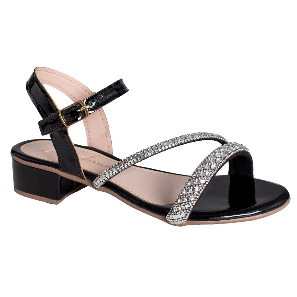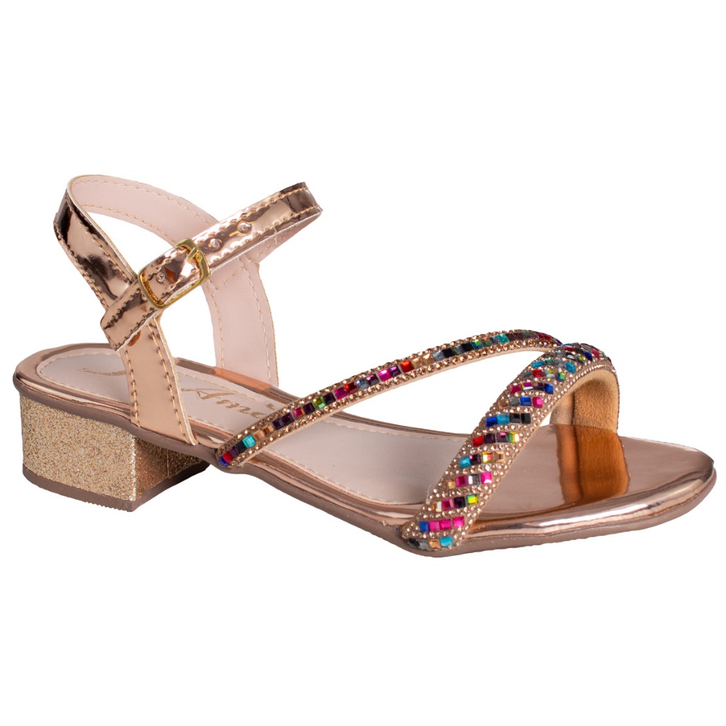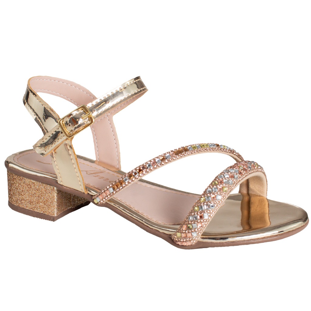 Sandália Saltinho Brilho Strass Infantil Menina Delicada Festa Casual Moda Promoção Antiderrapante