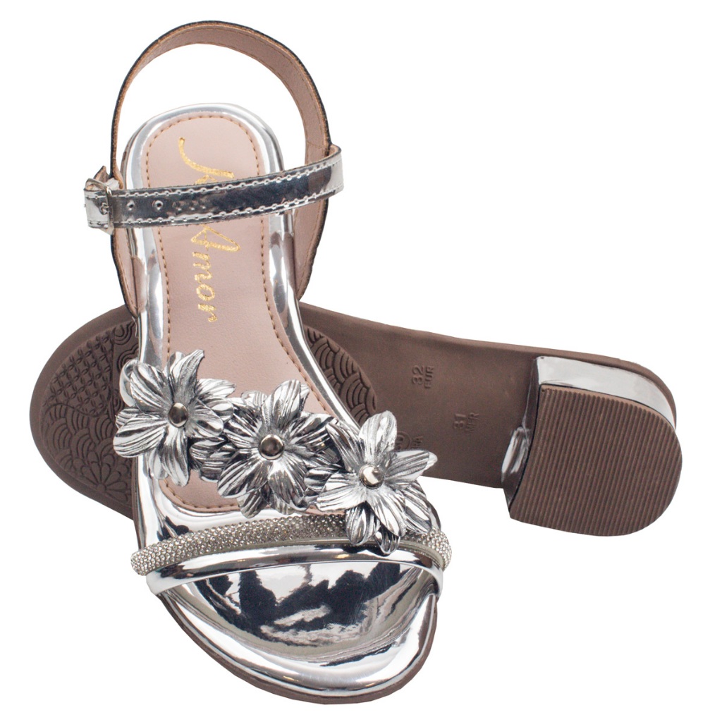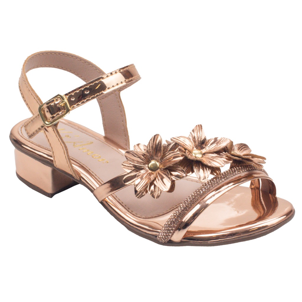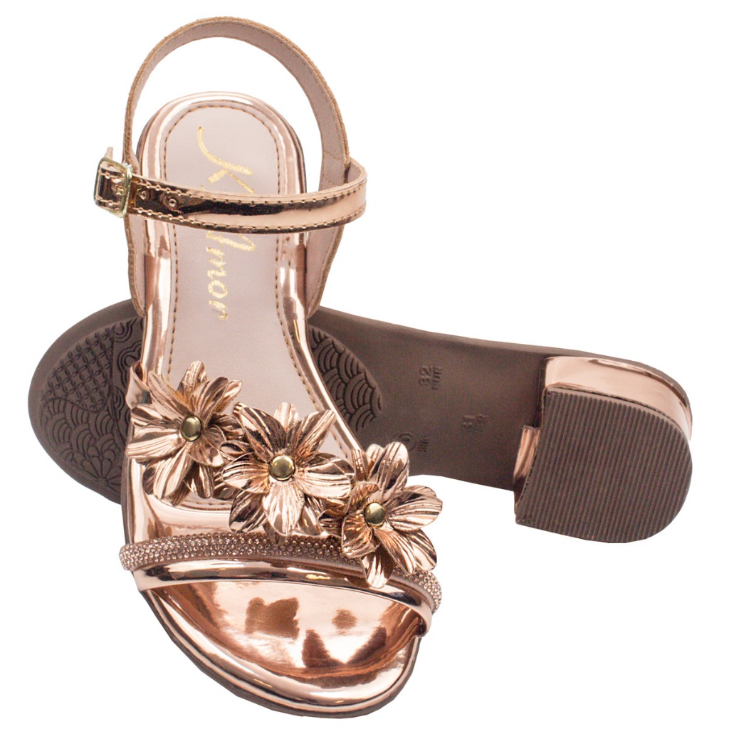 Sandália Saltinho Menina Infanto Juvenil Delicada Flor Confortável Fivela Metalizada Promoção