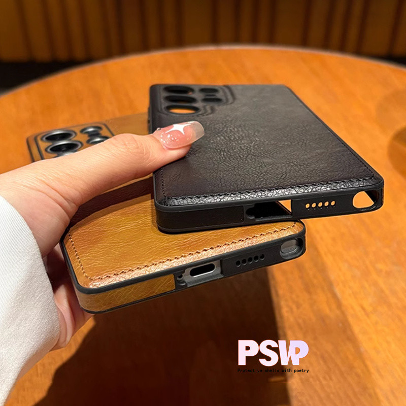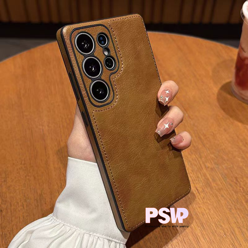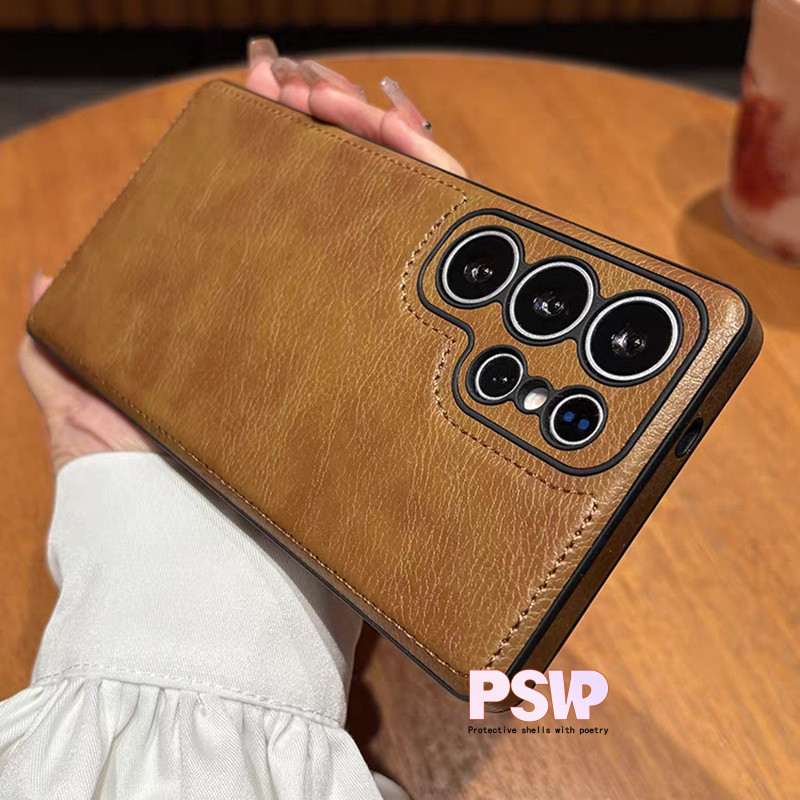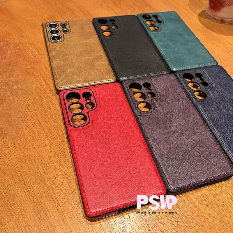 Luxo Vintage Caso De Couro Do Plutônio Para Samsung S25 Ultra S24 Plus S26 S22 S23Ultra À Prova De Choque Macio Pára-Cho