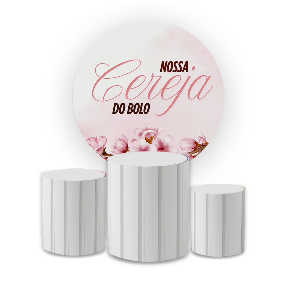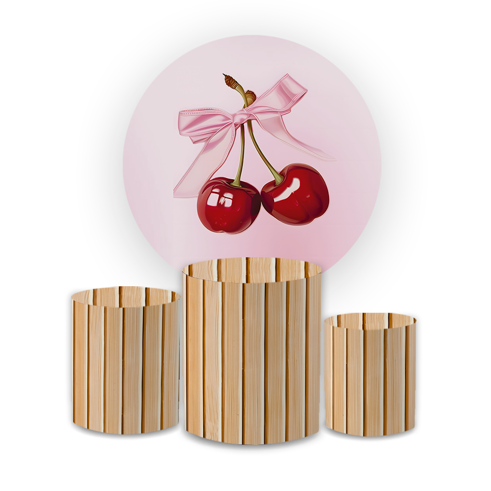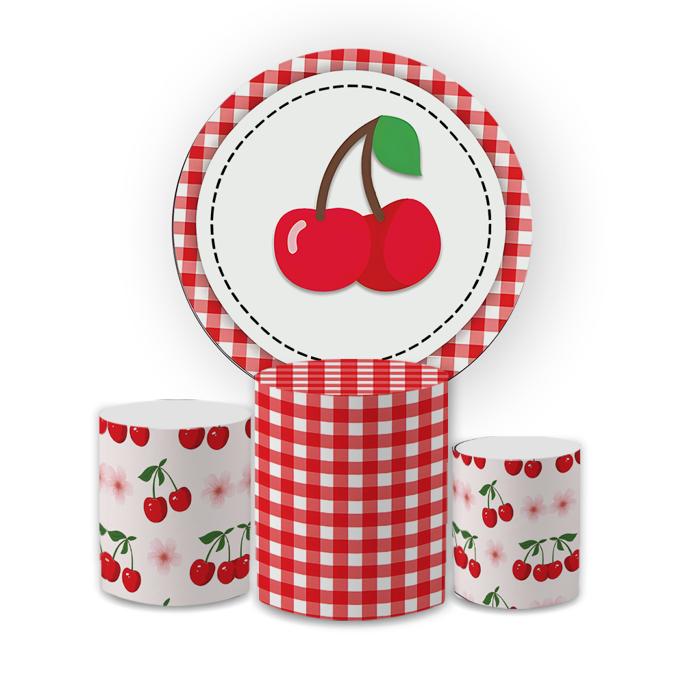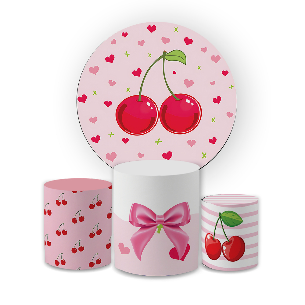 Kit Capa Painel Redondo 1,5 + Trio Cilindros Cereja Decoração Aniversário Infantil