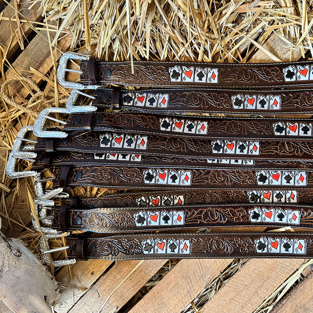 Cinto Country Baralho Couro Legítimo Estilo Durabilidade