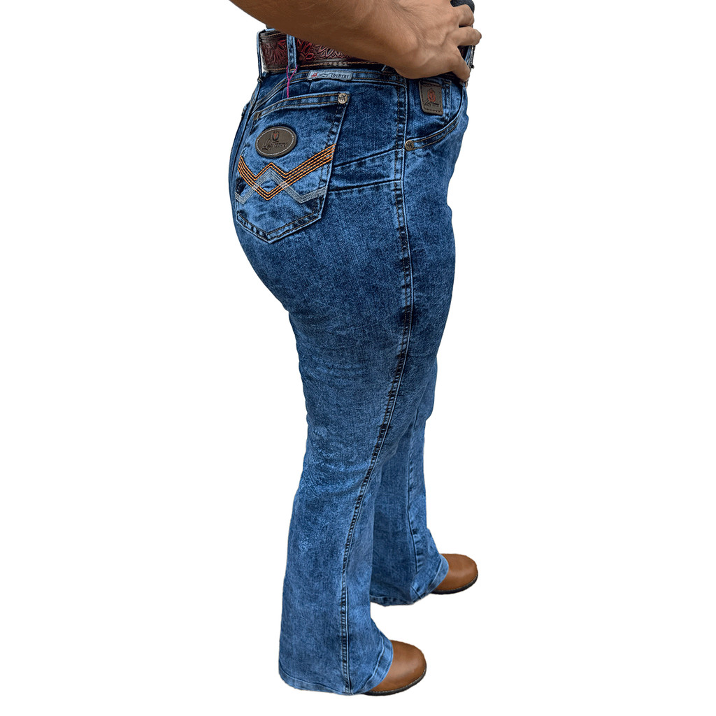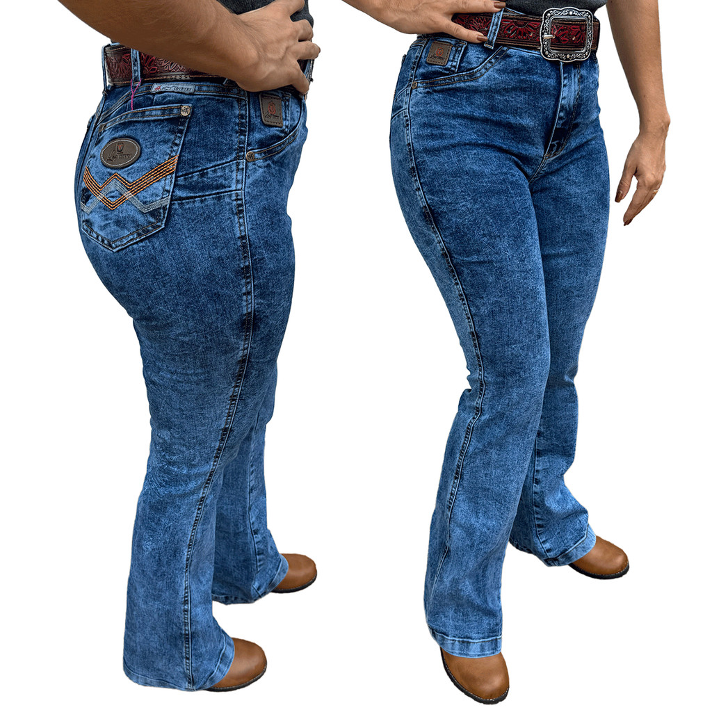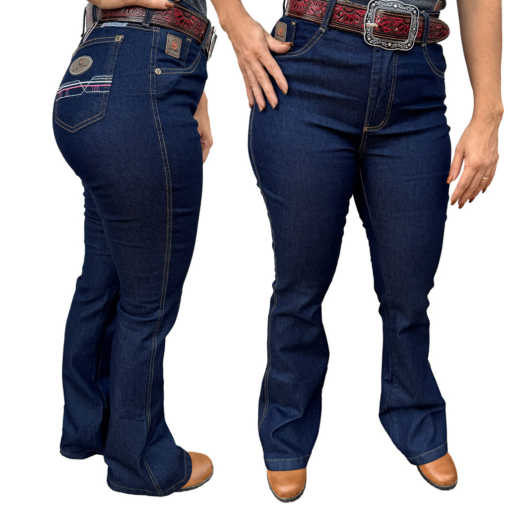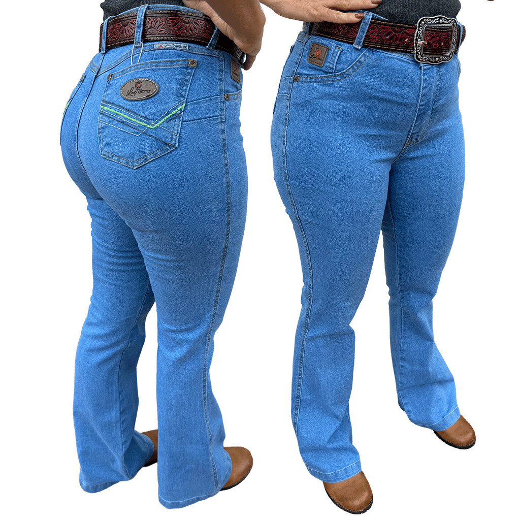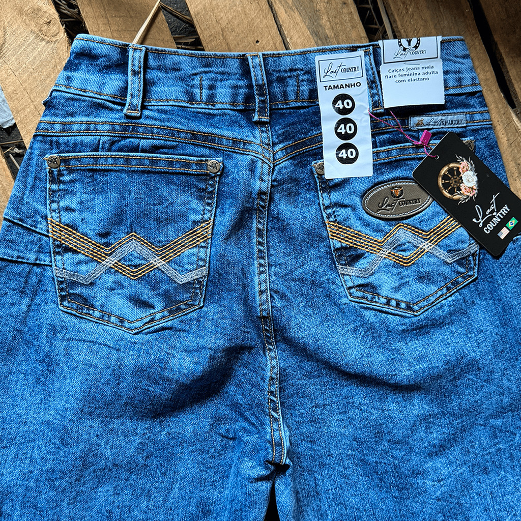 Calça Meia Flare Jeans Feminina Country Lisa com Elastano