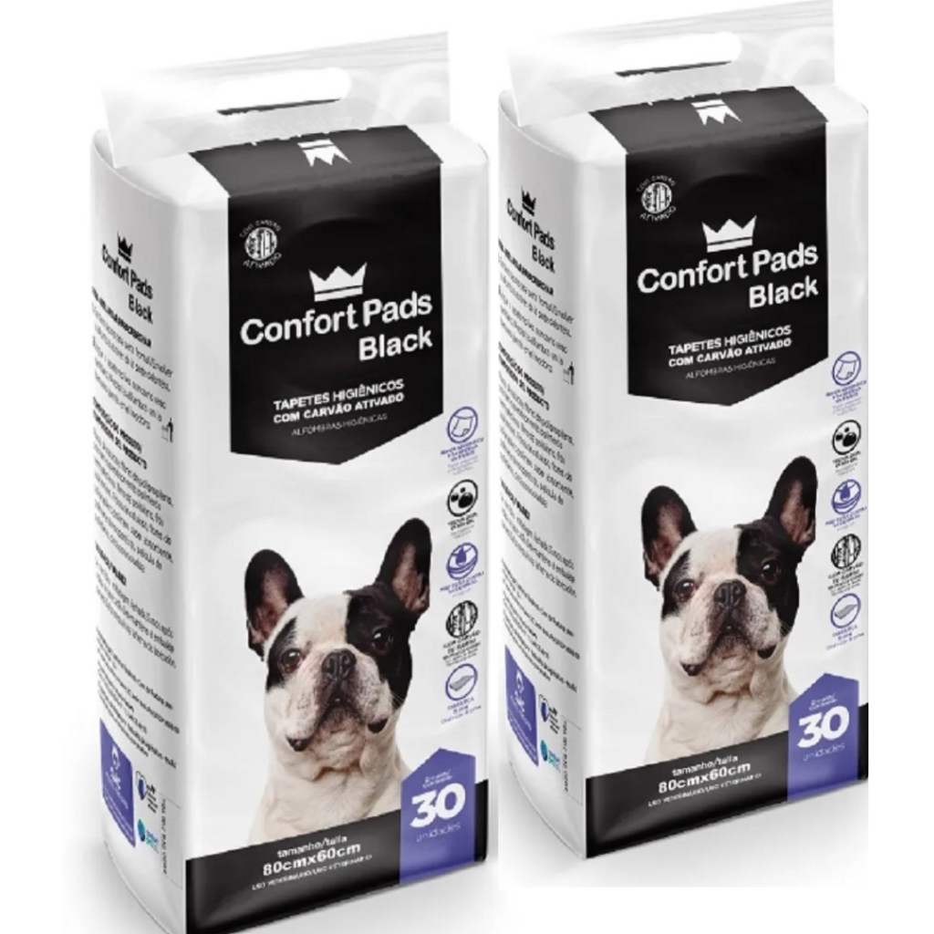 Kit Com 2 Pacotes De Tapete Higiênico Para Pets Confort Pads Black 80x60cm 60 Unidades