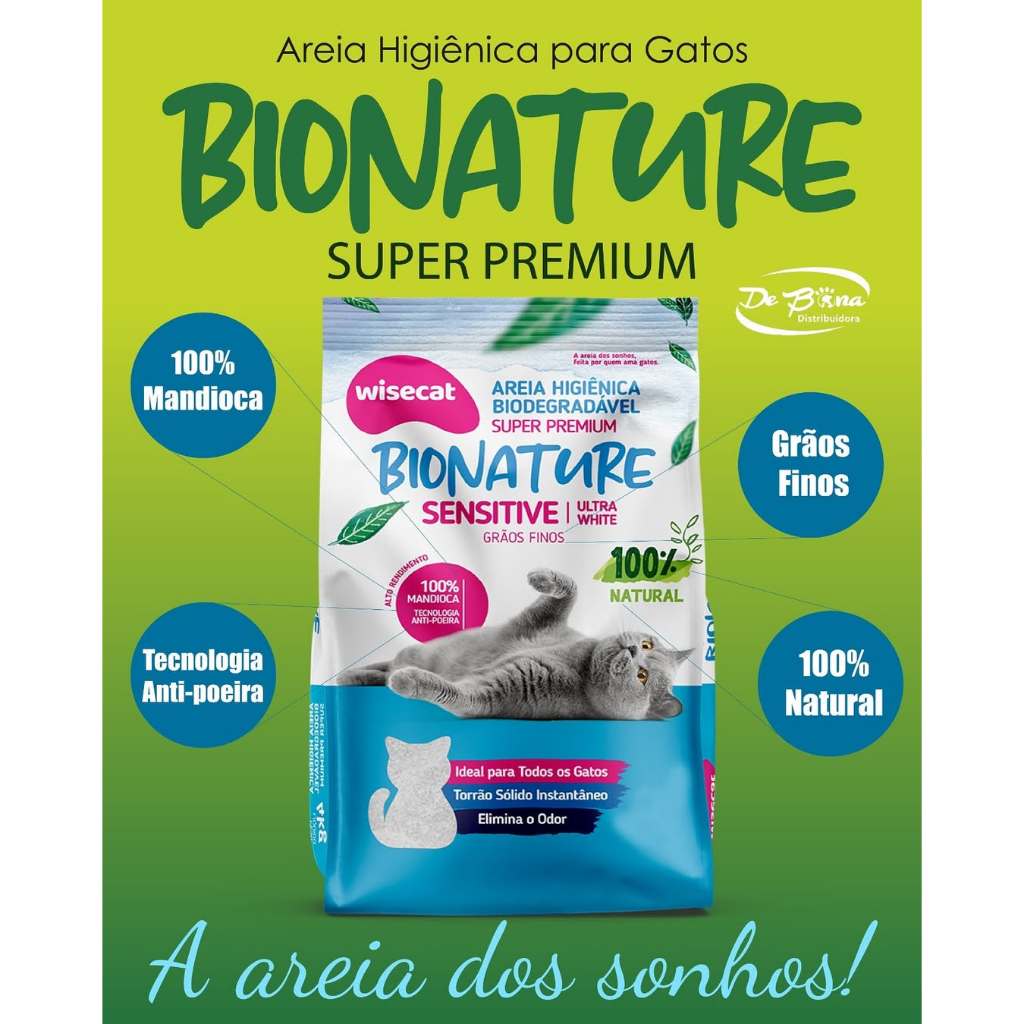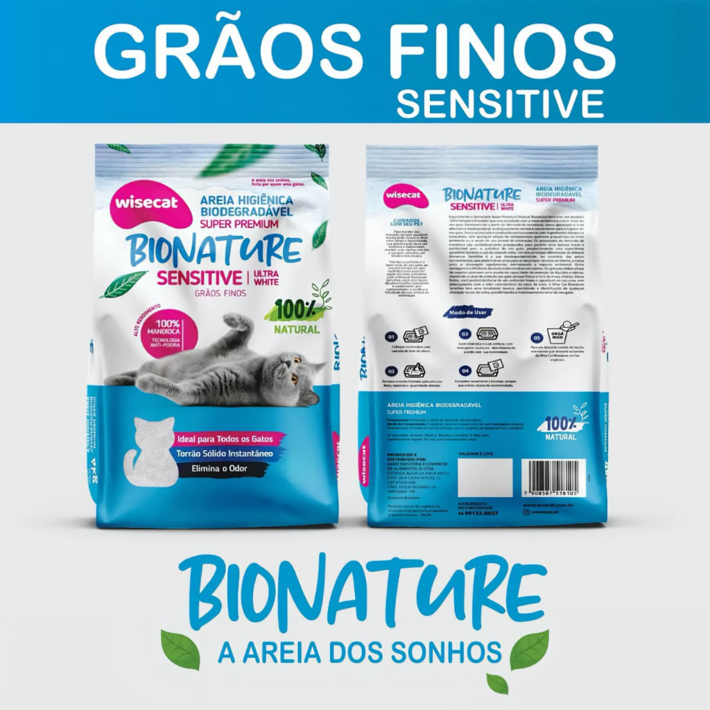 Kit 10 Areia Sanitária De Mandioca Grãos Finos Para Gatos Biodegradável Wisecat 20kg FARDO