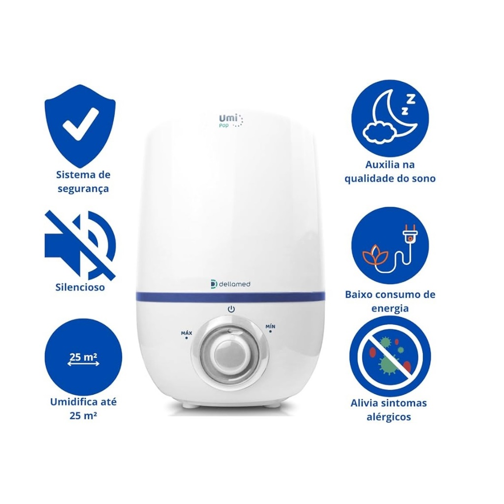 Umidificador de Ar Ultrassônico 2,3 Litros Umi Pop Dellamed
