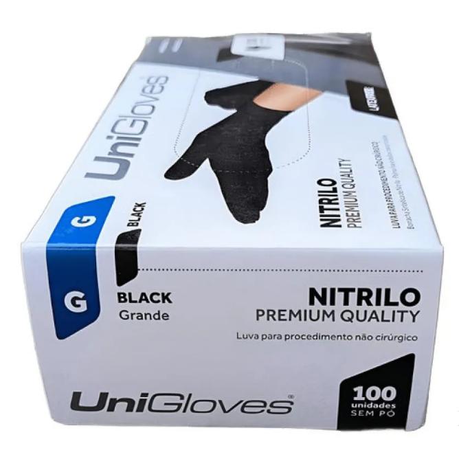 Luva De Procedimento Nitrilo Black Premium Com 100 Unidades UniGloves