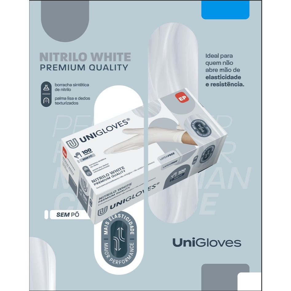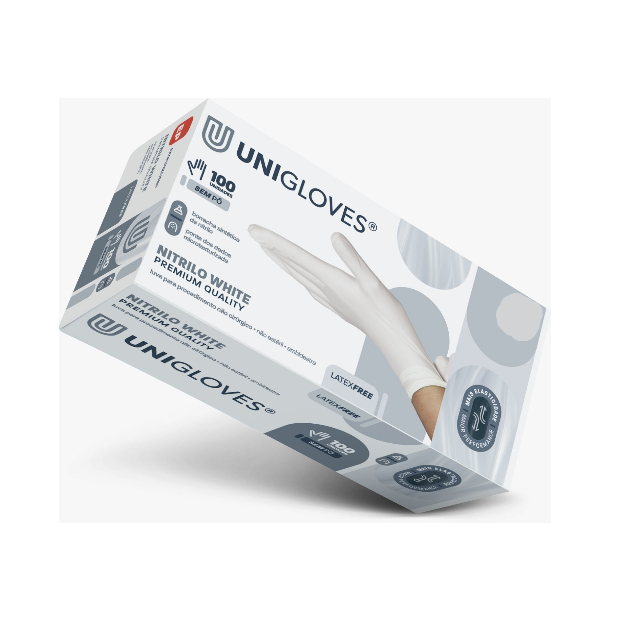 Luva De Procedimento Nitrilo White Premium Com 100 Unidades Unigloves