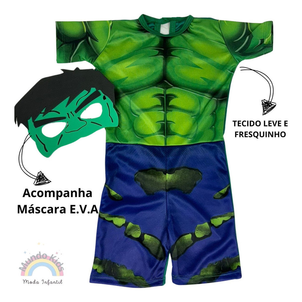 Fantasia Infantil Hulk Heróis Com Máscara - Envio Imediato