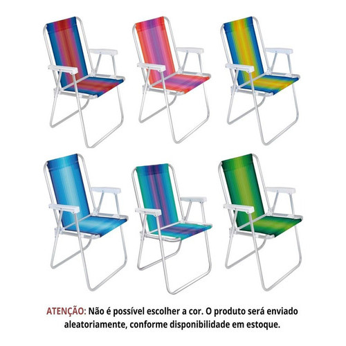 Kit 2 cadeiras de praia alta em alumínio cores variadas Mor 2101 cor colorido