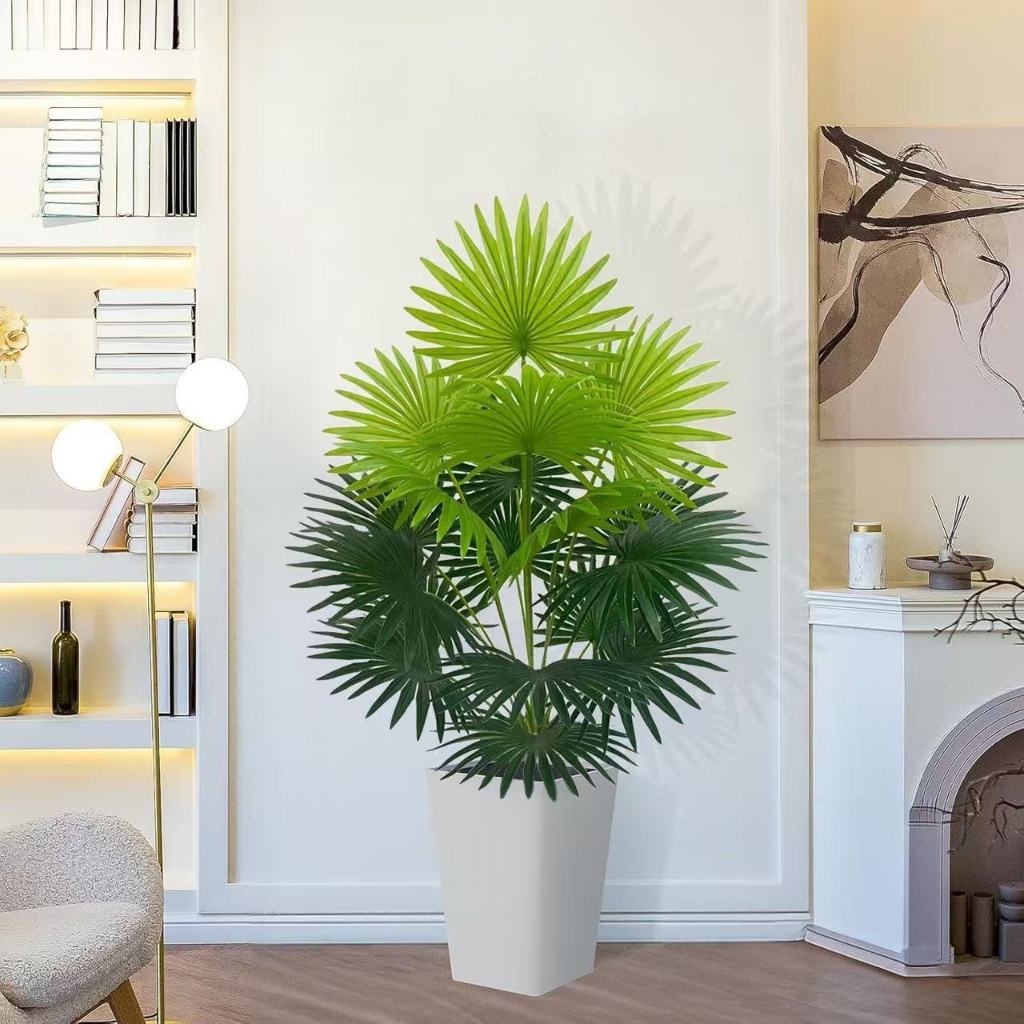 Simulação de planta artificial palmeira leque 75 cm 24 folhas sem decoração de vaso