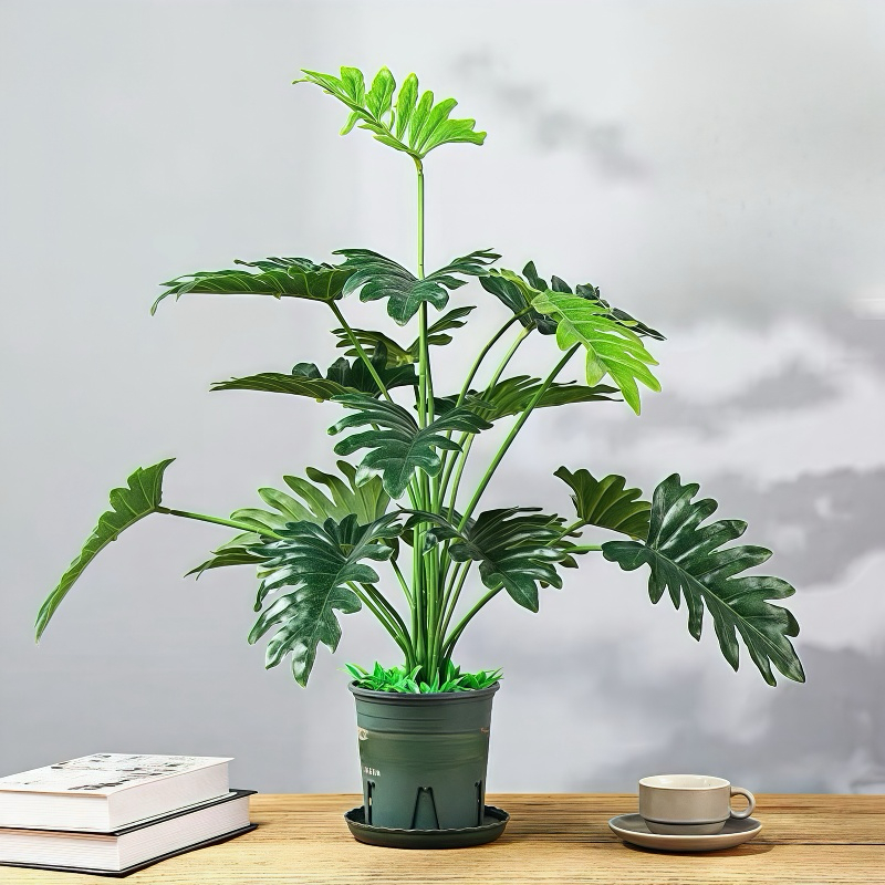 Planta Artificial 18 Folhas Folhagem Grande 70cm Decoração(Sem vaso)