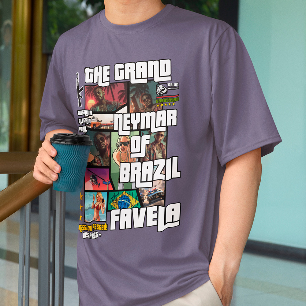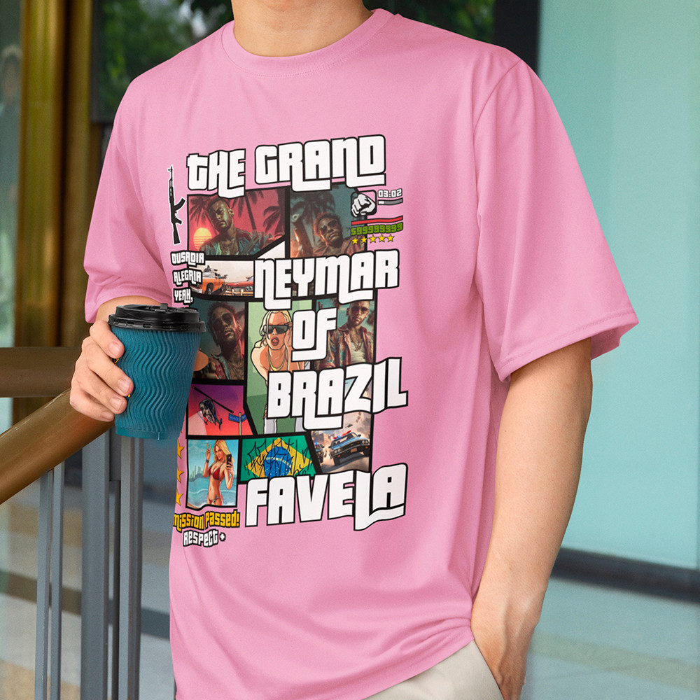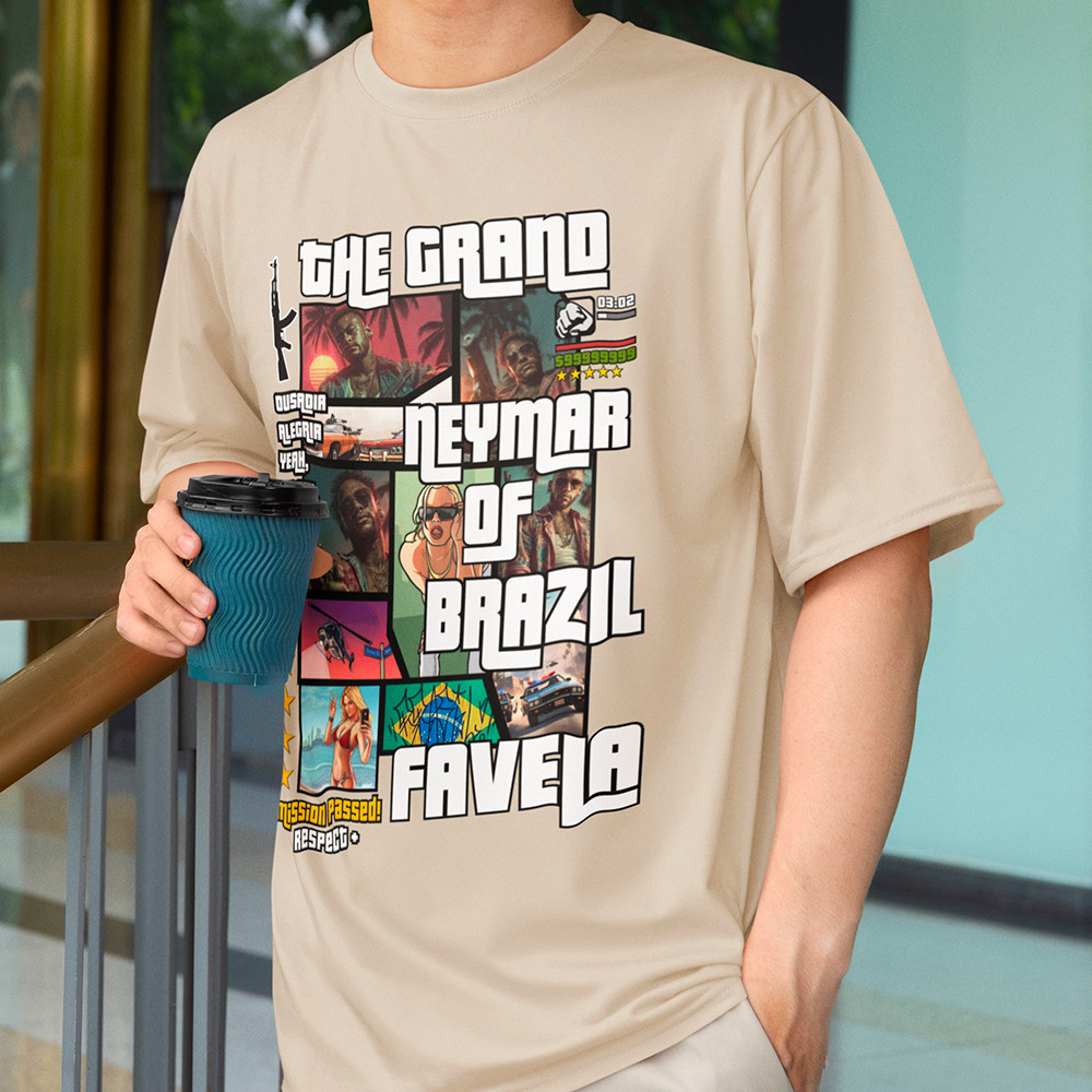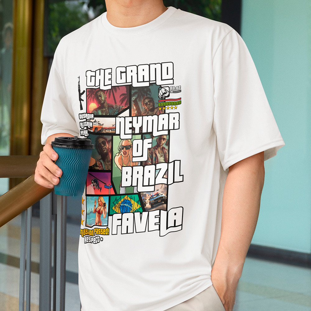 Camiseta Neymar GTA Brasil Personagem Video Game Camisa Masculina Futebol Algodão 30.1 Premium
