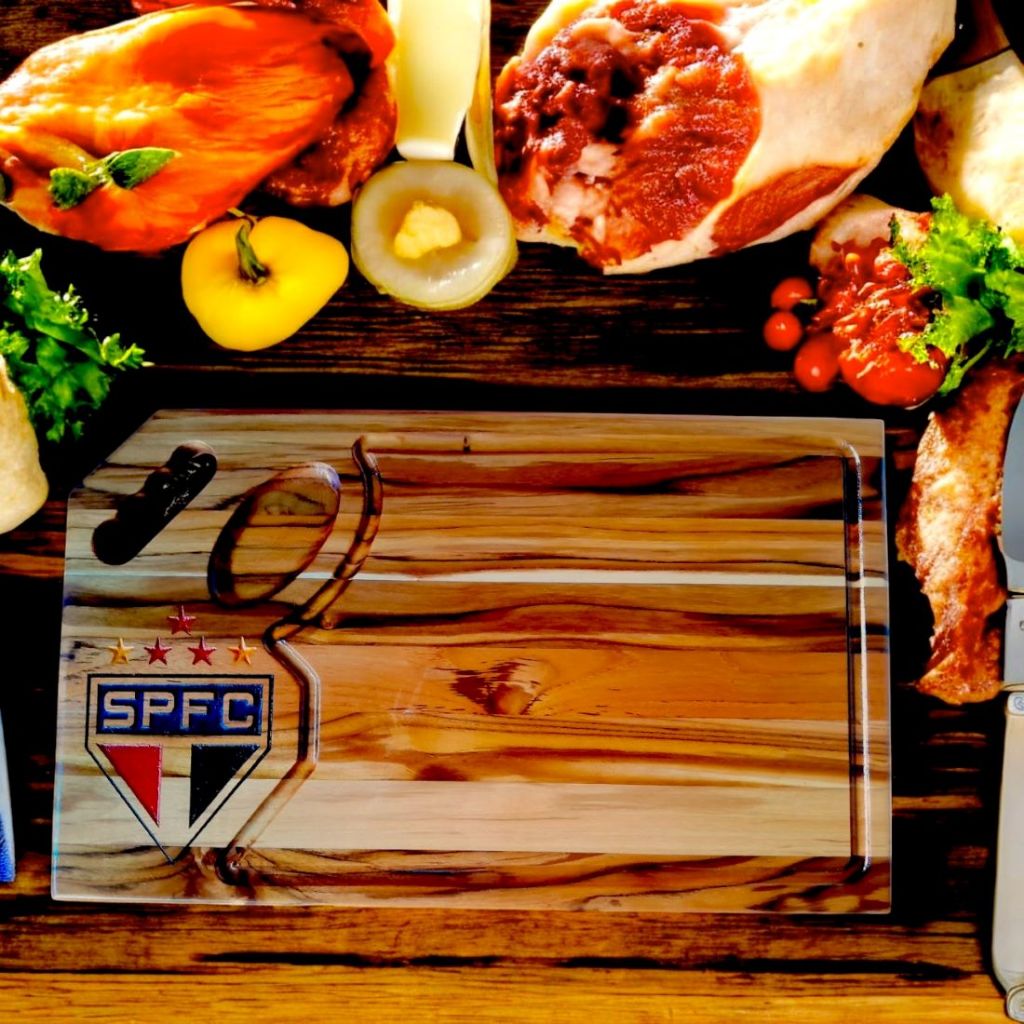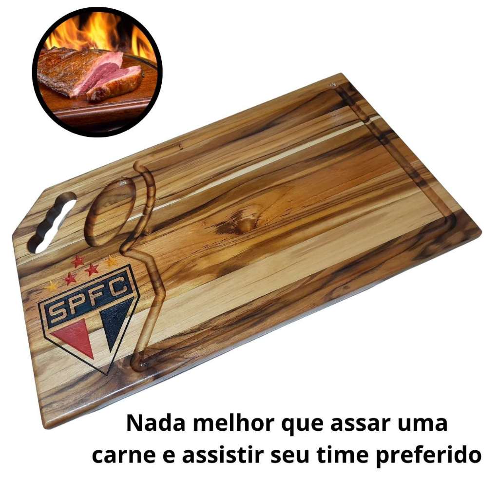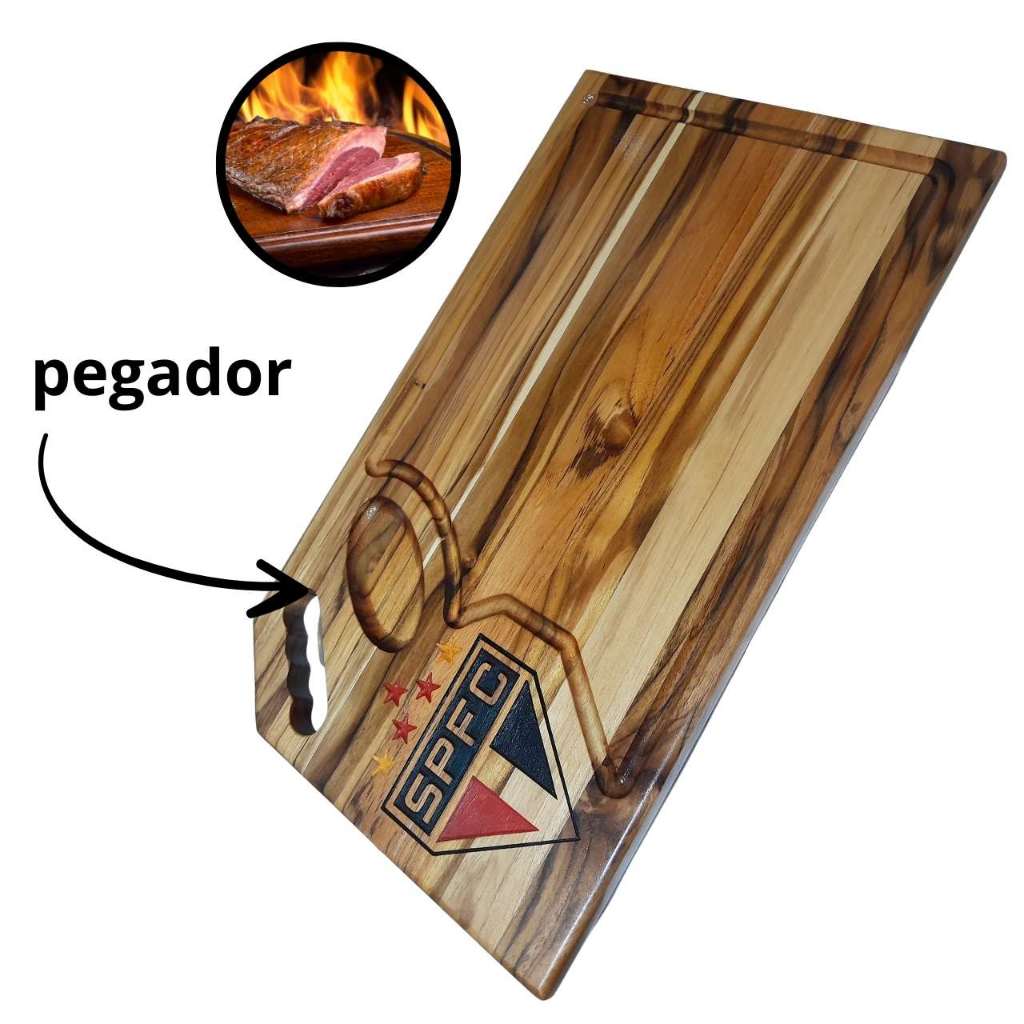 tábua de churrasco carne corte cozinha grande 50x30x2cm madeira teca com alça