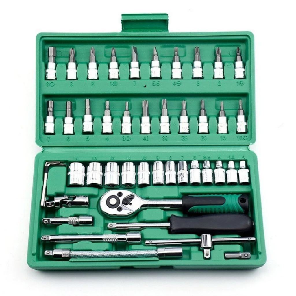 Jogo De Soquete 46 Peças Chave Catraca Reversível Resistente à Pressão Resistente à Abrasão