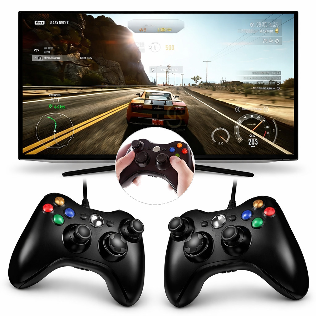 Controles com Fio para Videogame USB Gamepad Duplo com Vibração Compatível com PC