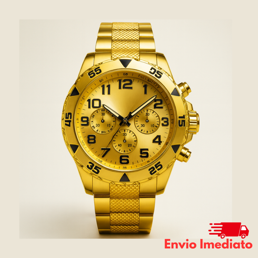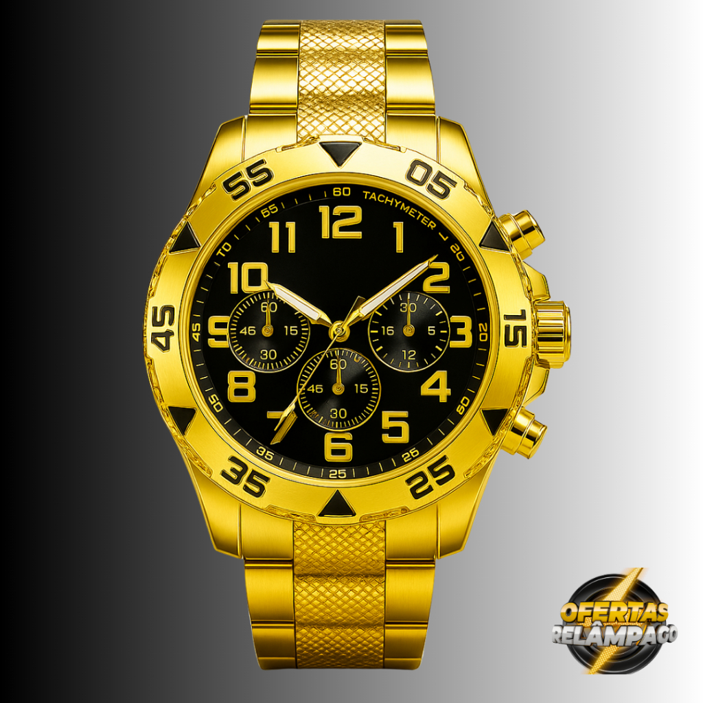 Relógio Masculino Luxo Dourado Prata Aço Inoxidável Presente Pais Estilo Pesado