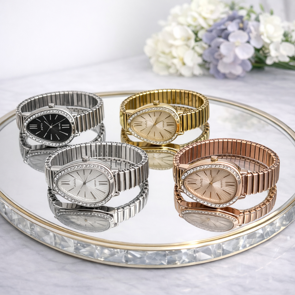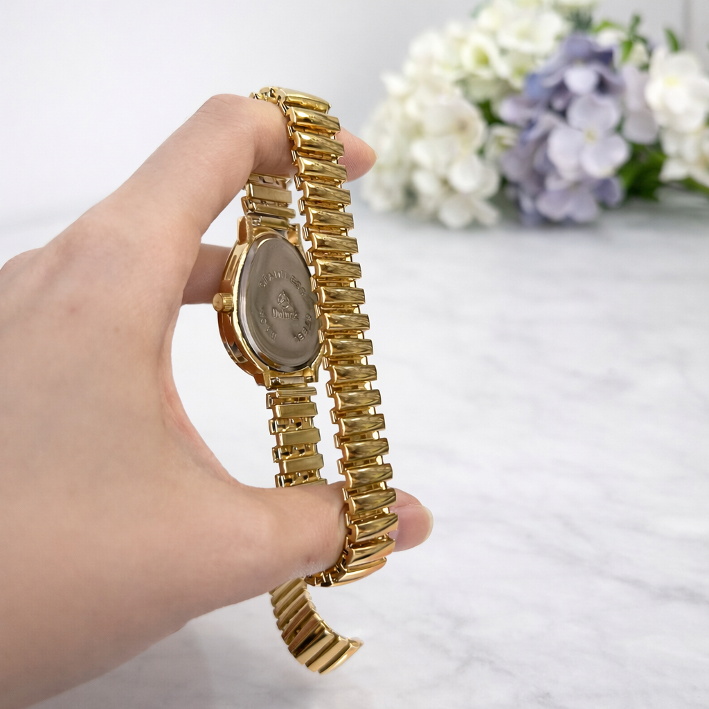 Relógio Feminino Inspiração Pulseira Elástica Cobra Dourado - Excelente Qualidade, Quartzo