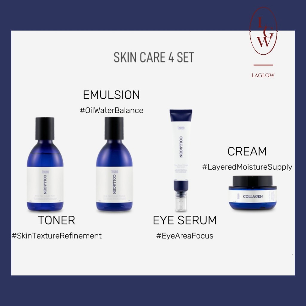 Conjunto De 4 Peças Para Cuidados Com A Pele TenZero Deep Aqua Collagen 2X-Coreanos Hidratantes , Reafirmantes E Antienv