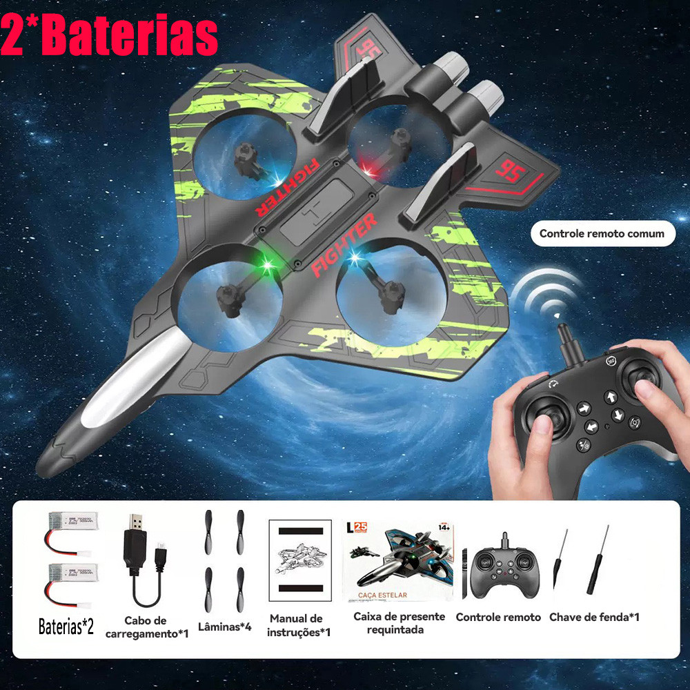 Drone Avião de Guerra 2.4GHz, Feito em EVA para Maior Resistência, 4 Motores e Alta Duração de Bateria