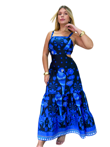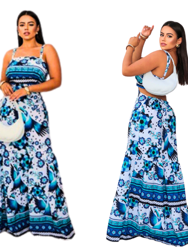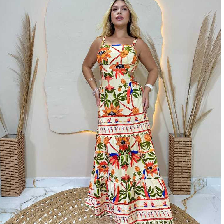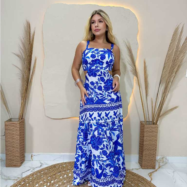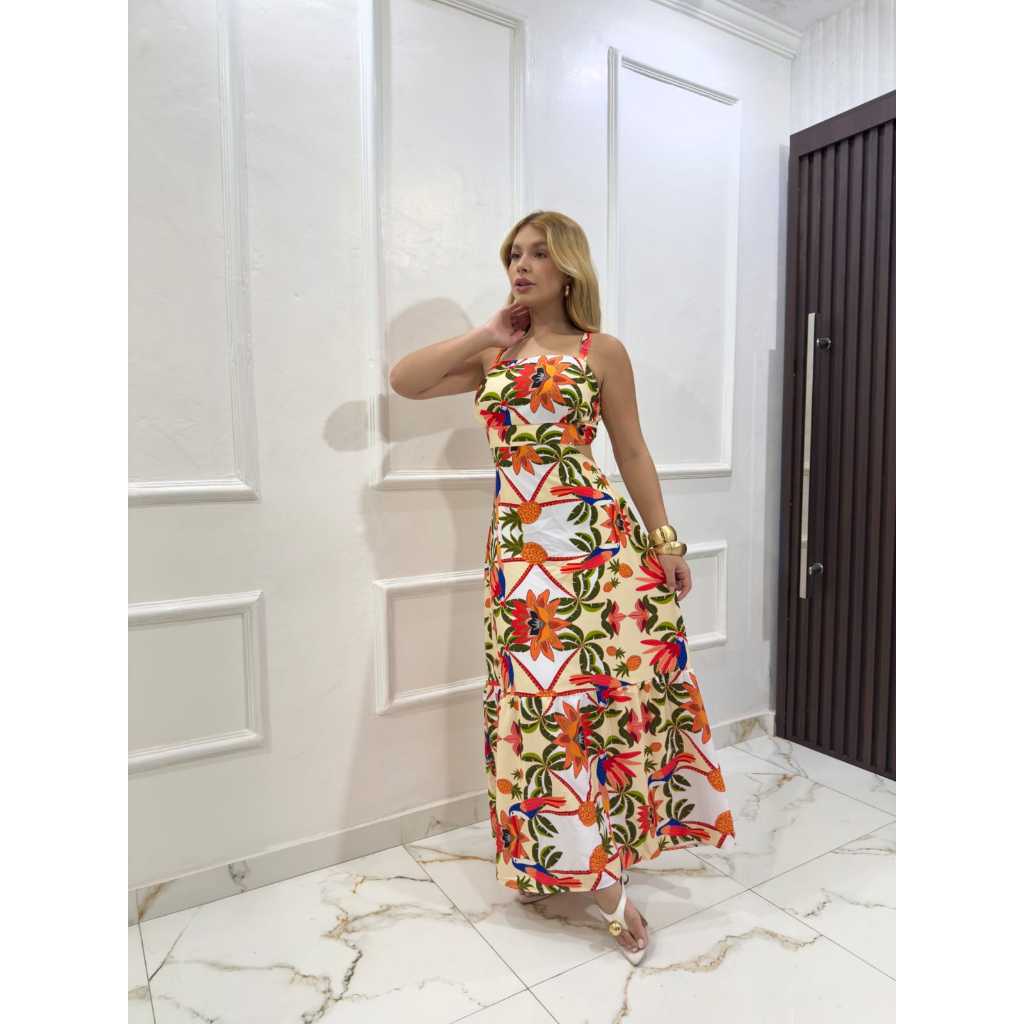 Vestido Longo Feminino Moda Evangélica Com Elastex Nas Costa Alca Regulável