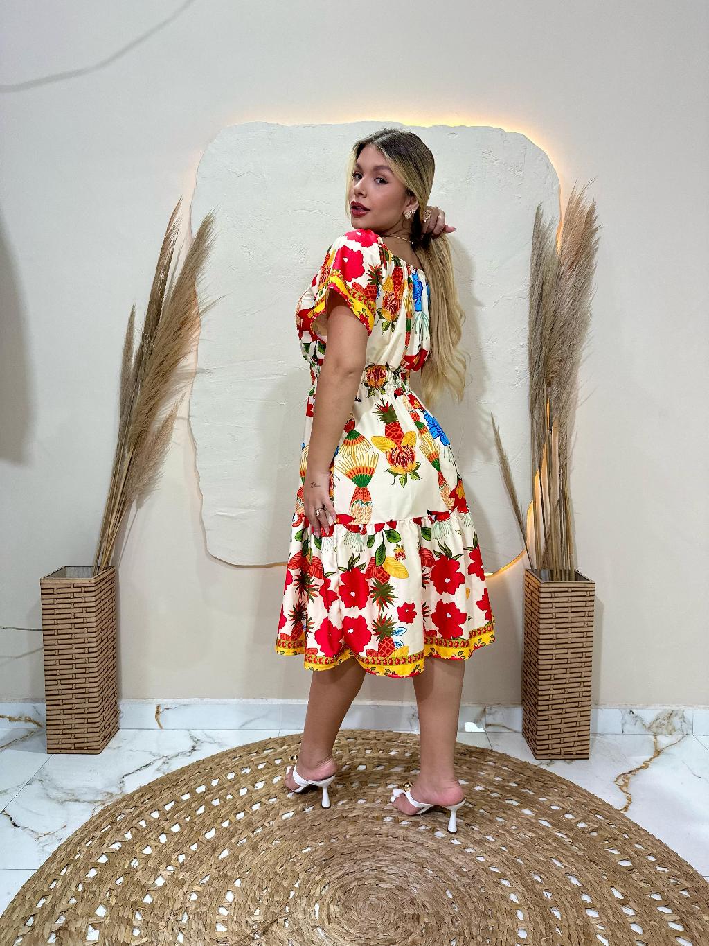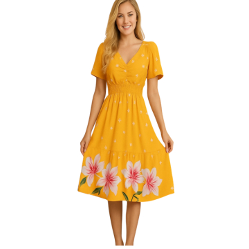 Vestido Casual Estampado com Flores em Estilo A-Line Feminino, Verão