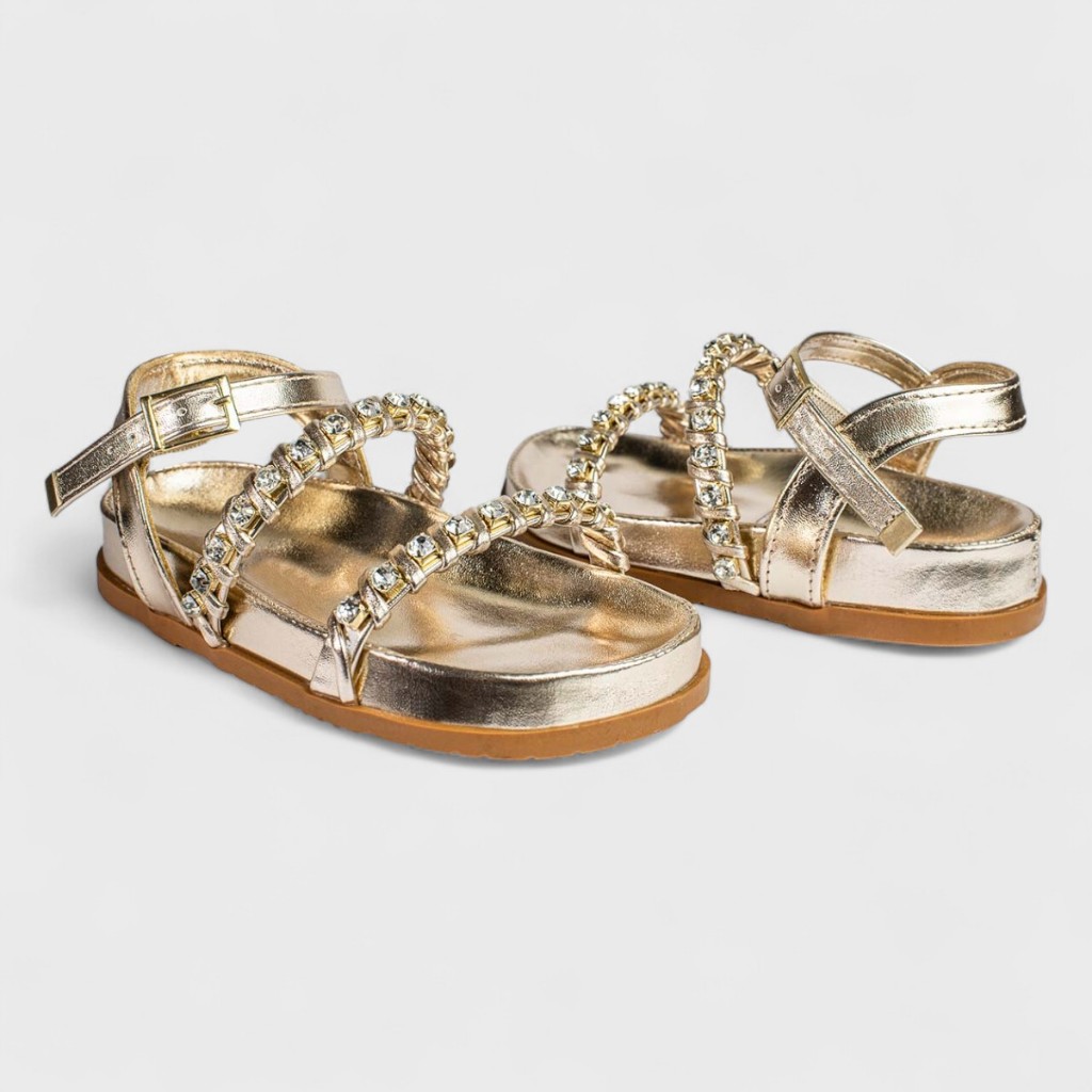 Sandália Birken Infantil Feminina Napa Calce Fácil em Pedraria Dourado Metalizado