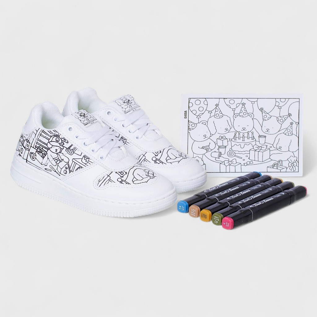 Tênis Infantil De Colorir + Kit 5 Canetinhas Confortável Original Divertido Lançamento