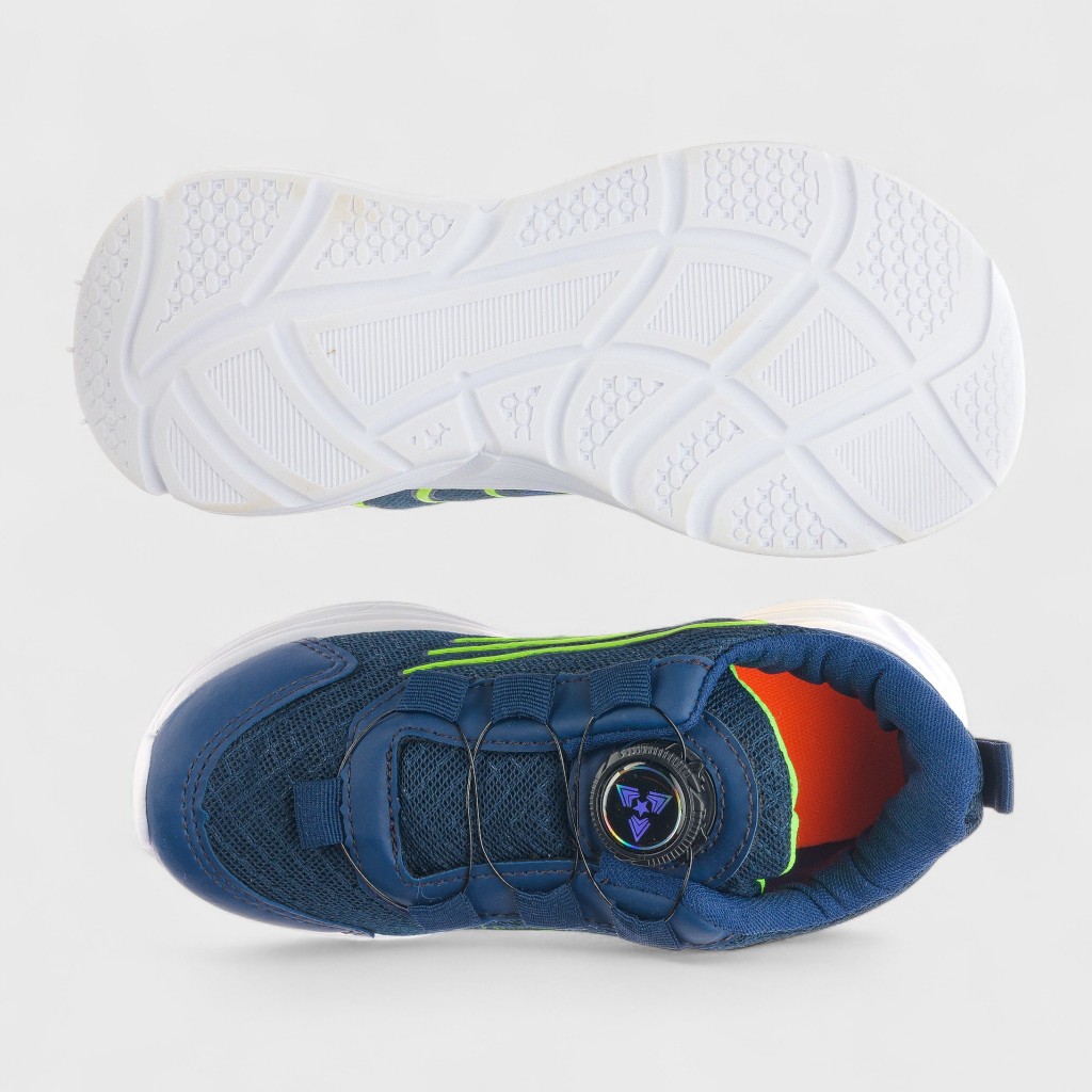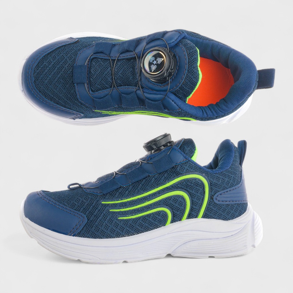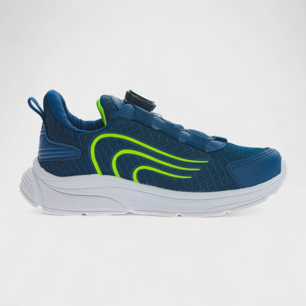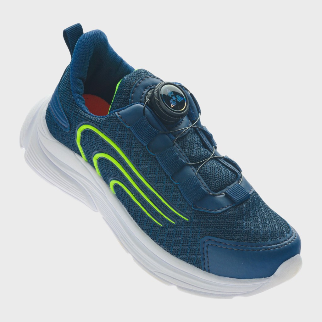 Tênis Infantil Masculino Confortável Escolar Nylon Fechamento Disk Marinho/Verde Limão
