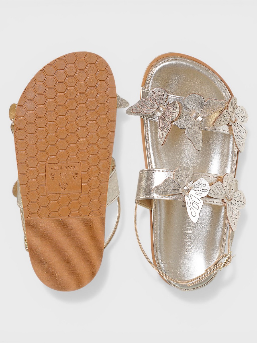 Sandália Birken Infantil Feminina Anatômica Casual Meninas Borboleta Delicada Dourada Metalizada