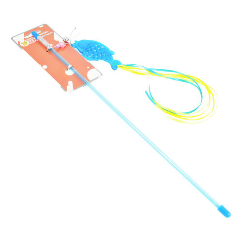 Varinha De Plástico Para Gatos Com Peixe E Fitas Great Pets Cor Azul