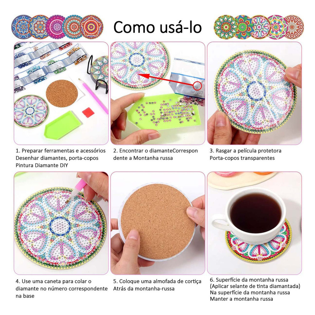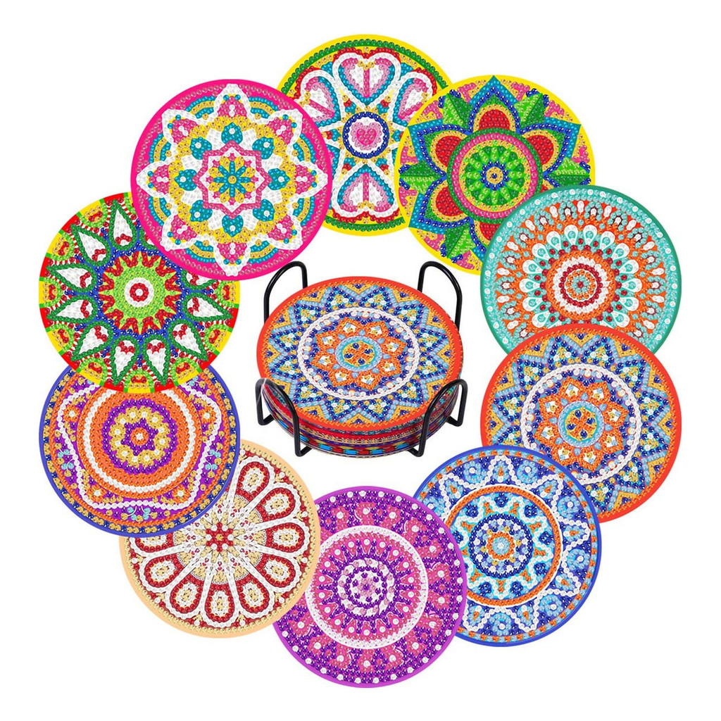 Artesanato Pintura Diamante Diy Porta Copos 10 Kit Mandalas