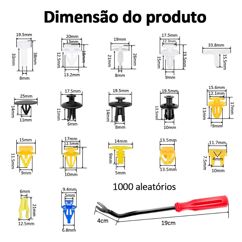Clips de fixação de carro misto para para-choque, para-lama, guarnição, plástico, rebite, painel de porta