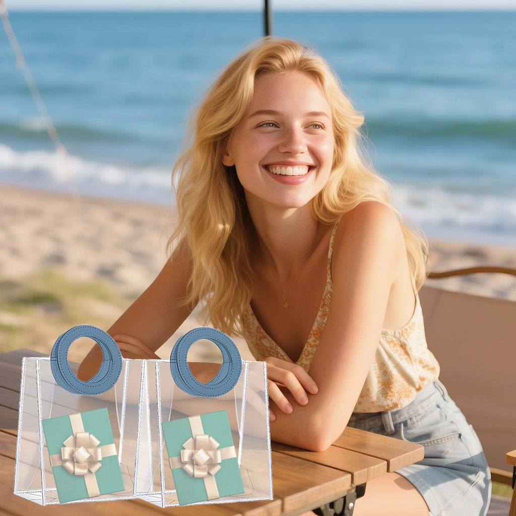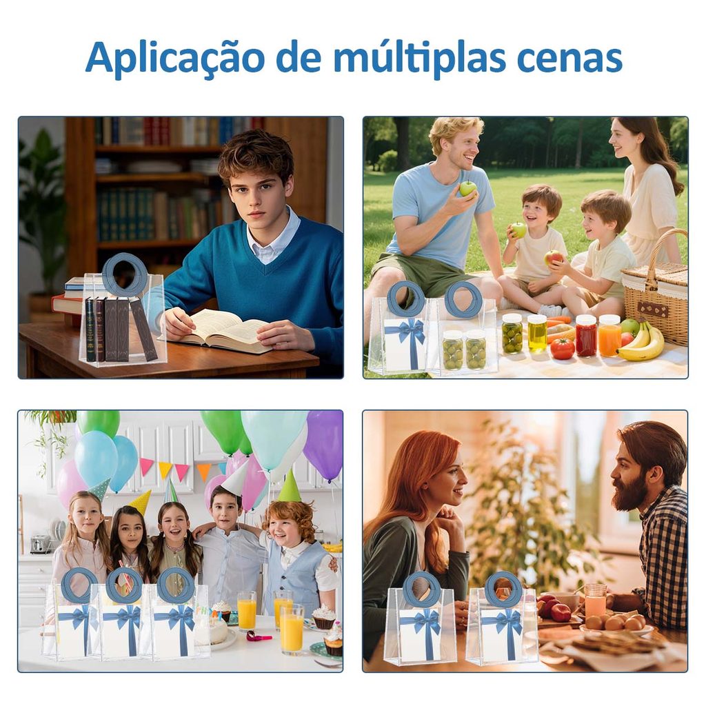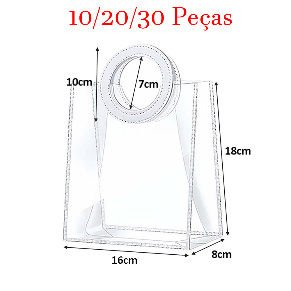 16 x 8 x 18 cm, 10/20/30 Peças sacos de presente de PVC transparente com alças redondas, sacola de embrulho reutilizável