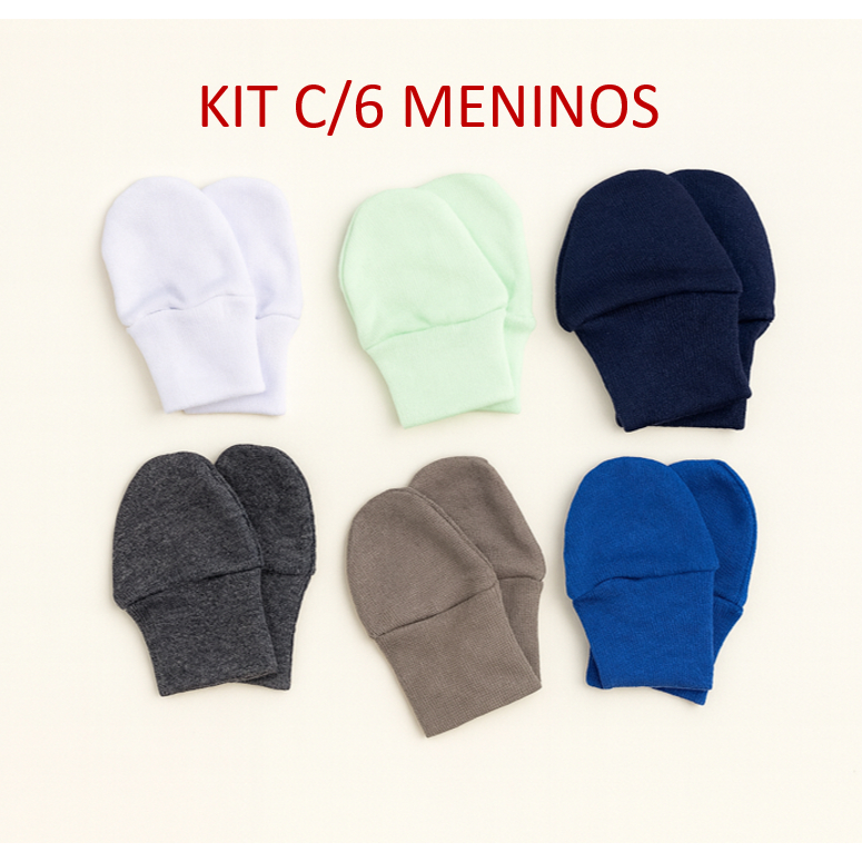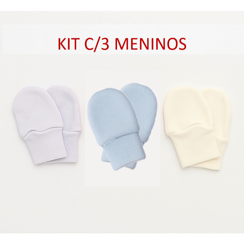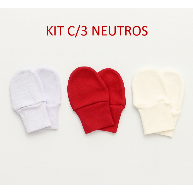 Kit 3 ou 6 Pares Luvas RN Bebê Recém-Nascido 100% Algodão Suedine Cores Neutras