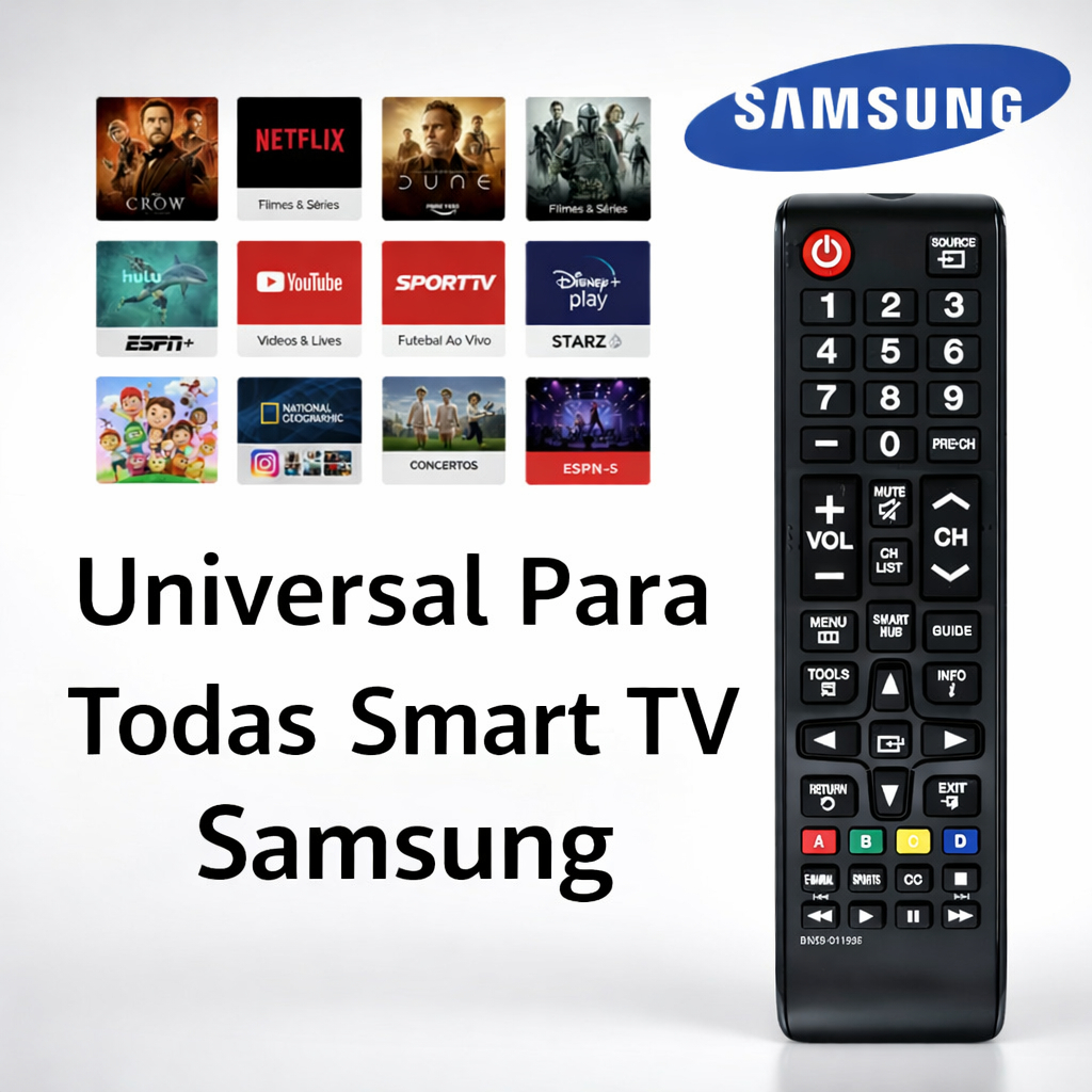 Kit Controle Remoto Compatível Samsung Smart TV LCD LED 4K + Pilhas AAA Envio Imediato