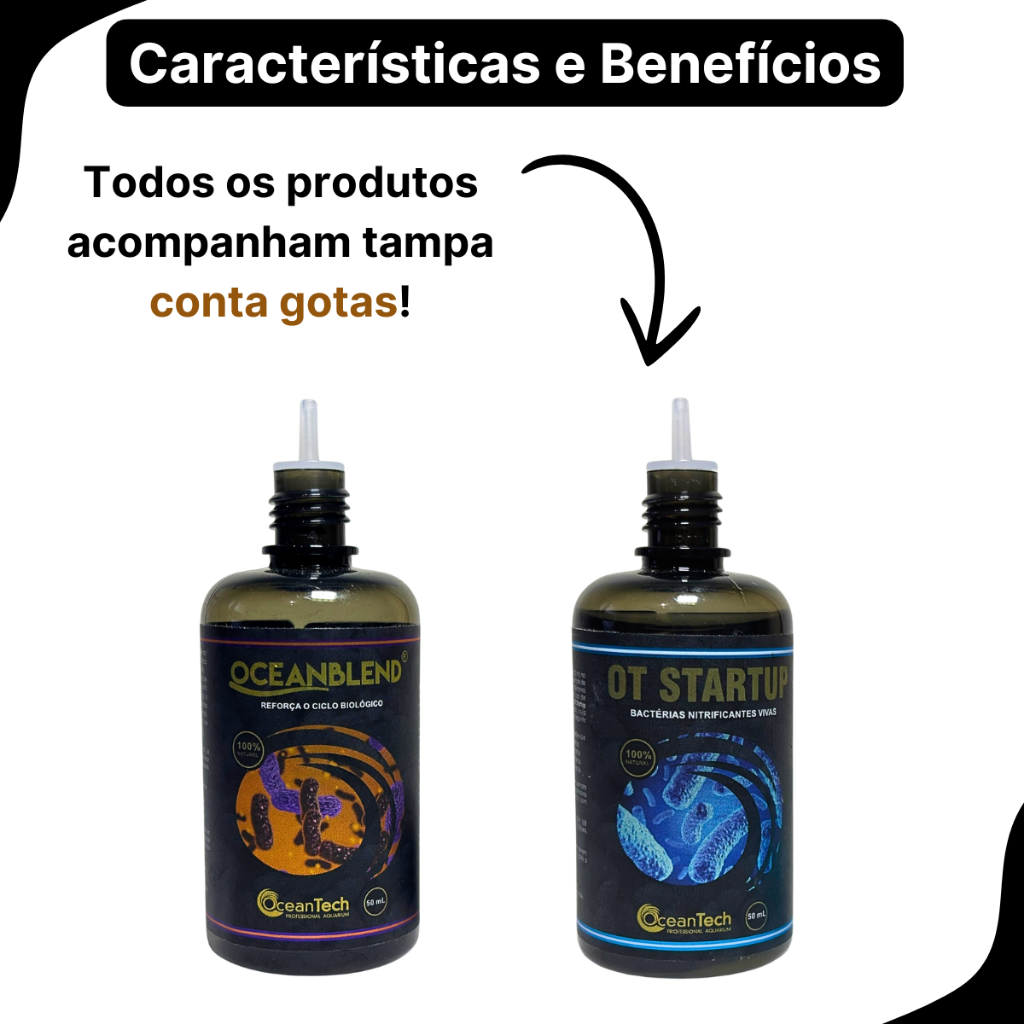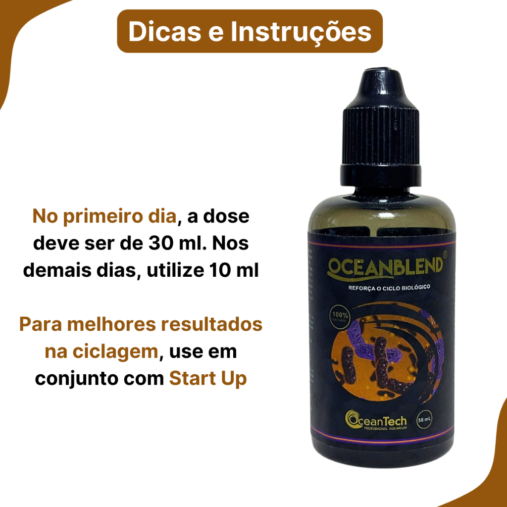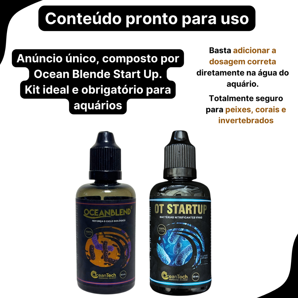 Kit Aquário Ocean Blend 50ml + Start Up 50ml Ocean Tech Removedor Matéria + Acelerador Biológico
