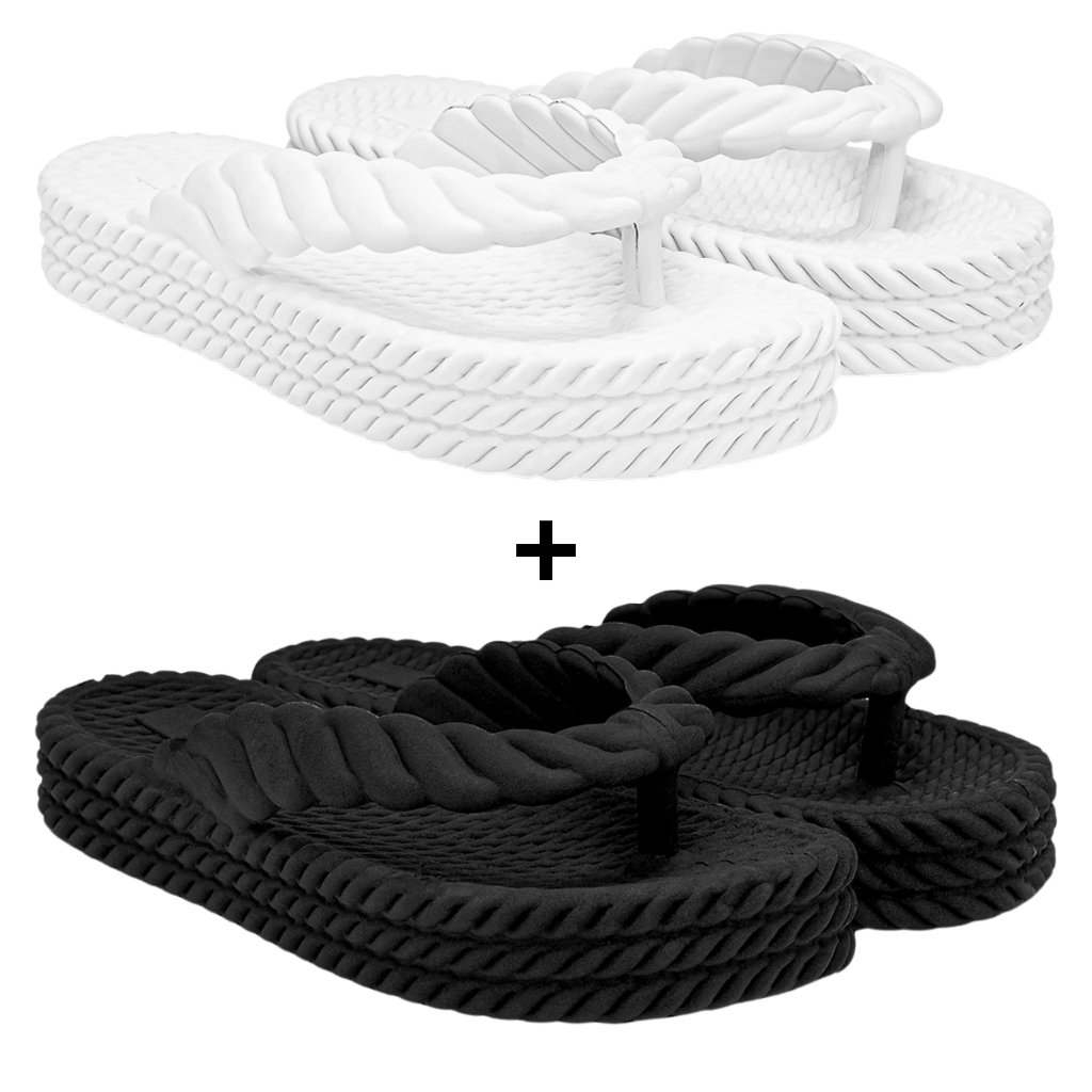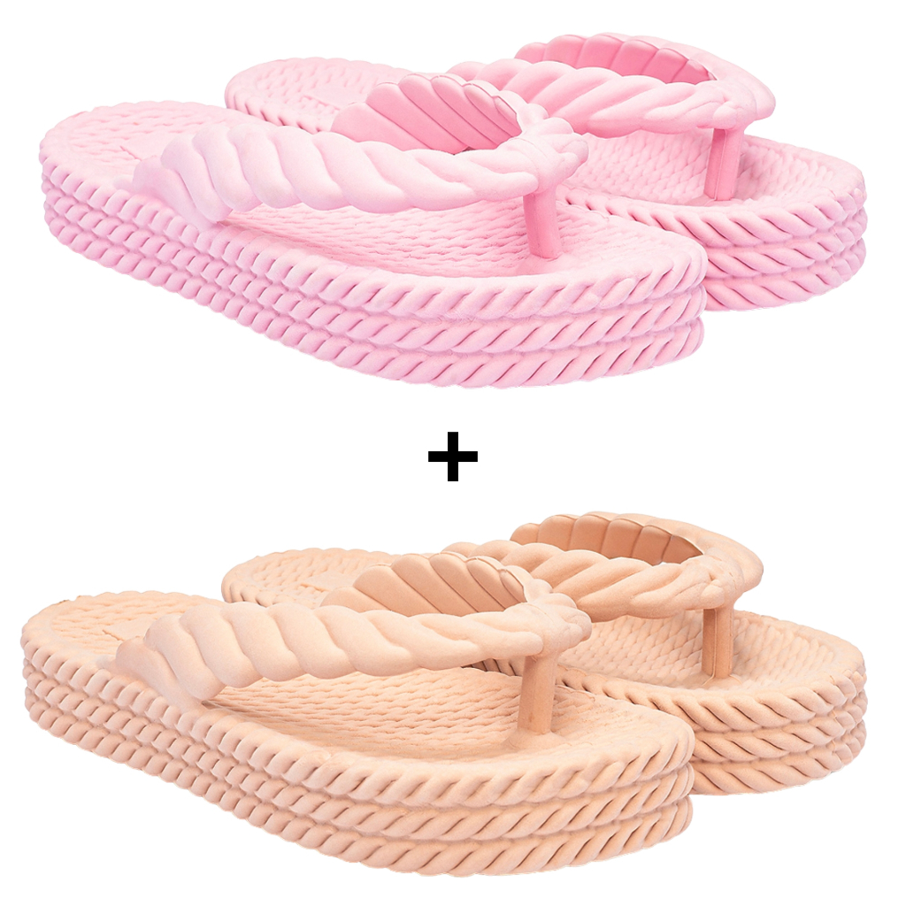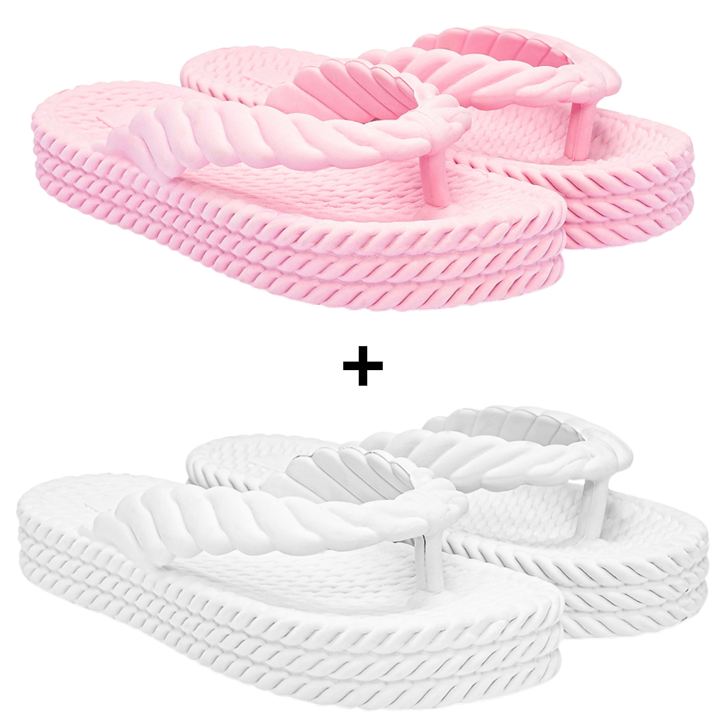 Kit Chinelo Feminino Sandália Ortopédico Plataforma 3 Tranças