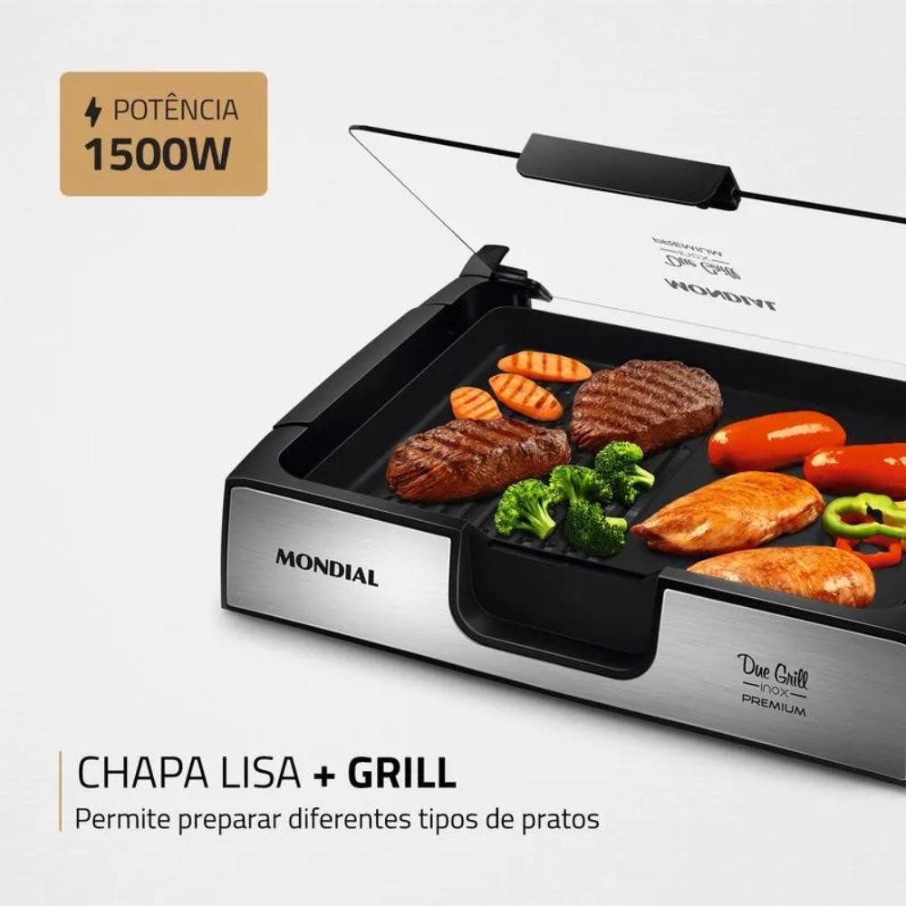 Chapa Mondial Due Grill Premium Preto/Inox 1270W 127V - G-10