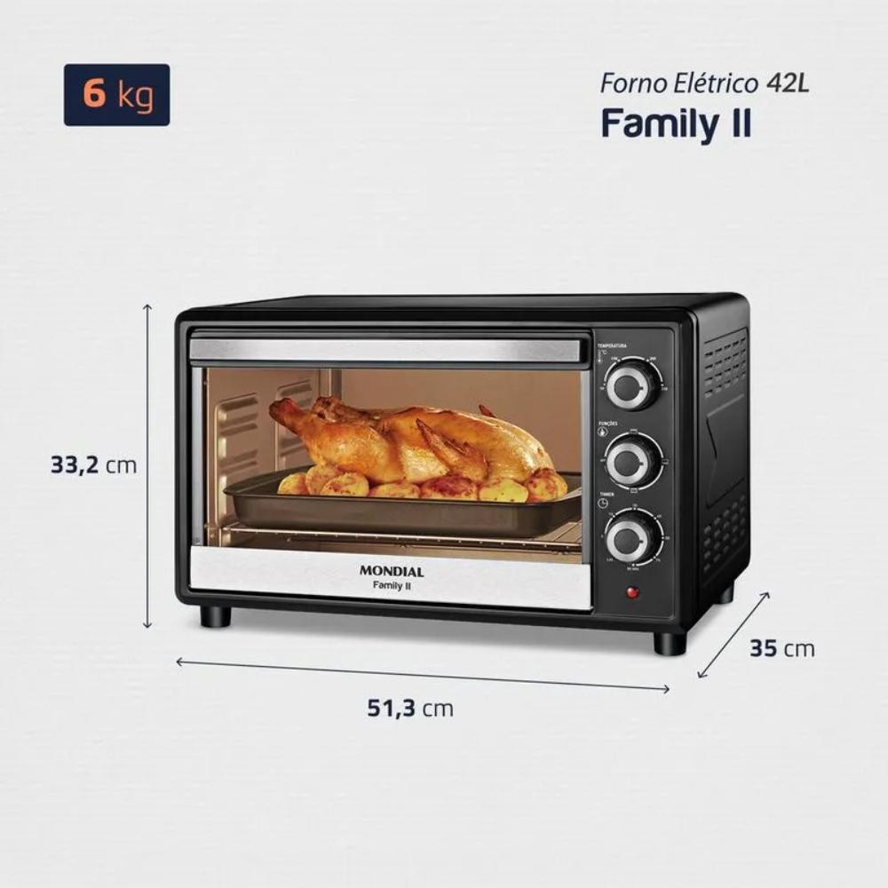 Forno Elétrico de Bancada Mondial 42L Family II Preto/Inox 1600W 127V - FR-42