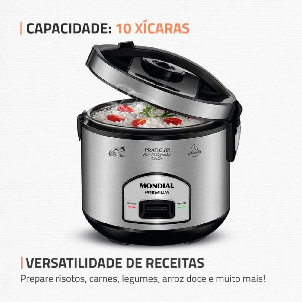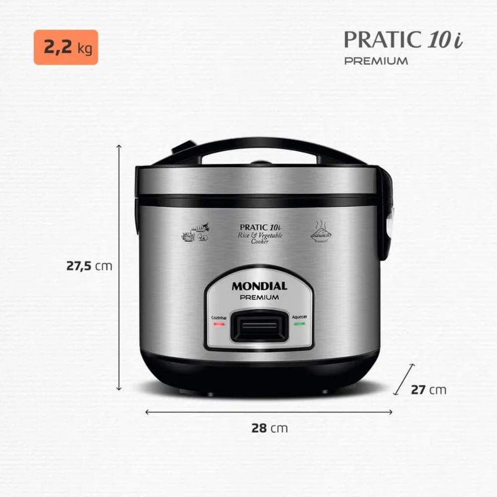 Panela Elétrica de Arroz Mondial Pratic 10i Premium Preto/Inox 700W 127V - PE-42-10X