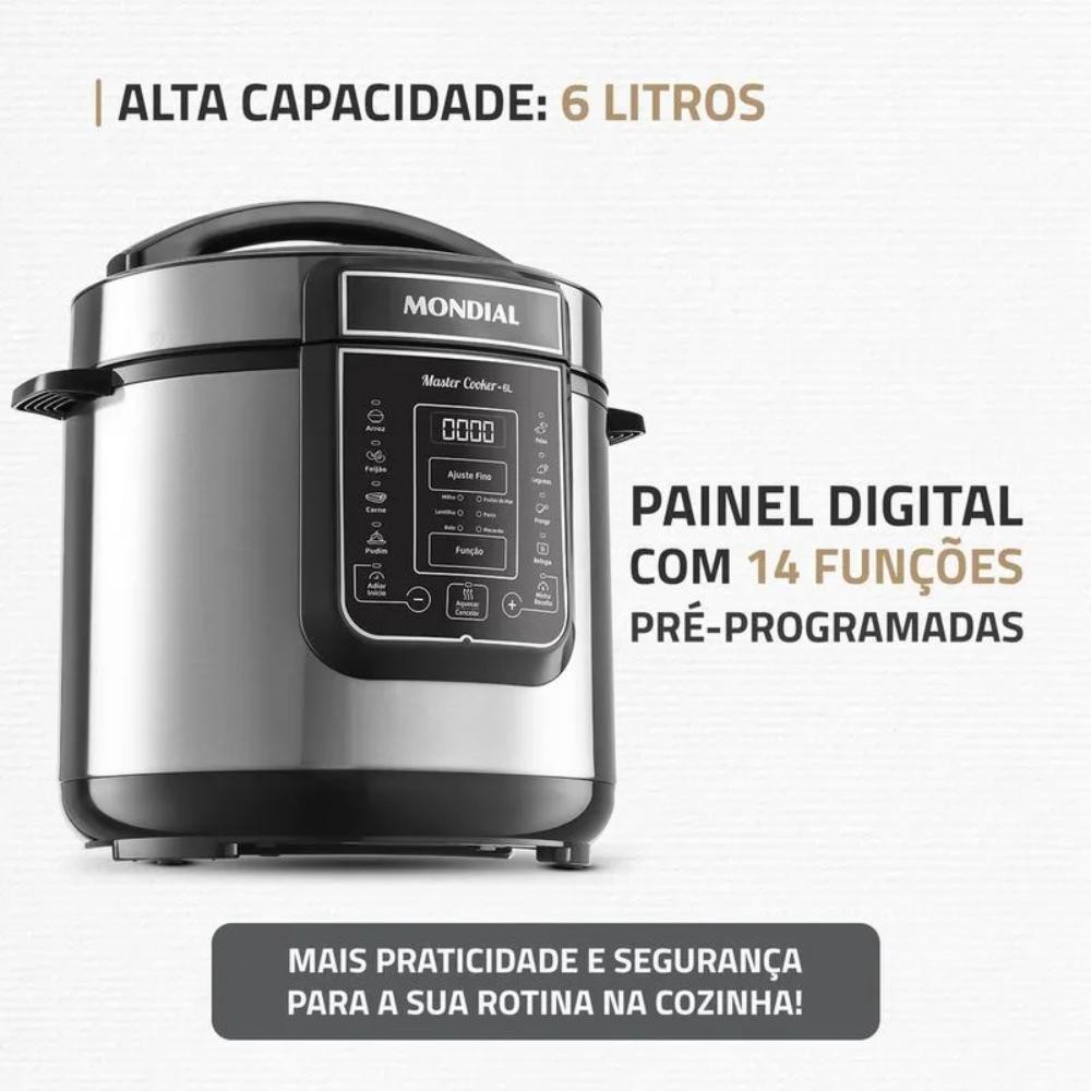 Panela de Pressão Elétrica 6L Digital Master 1000W Mondial Cooker PE-60-6L-I Preto/Inox 127V