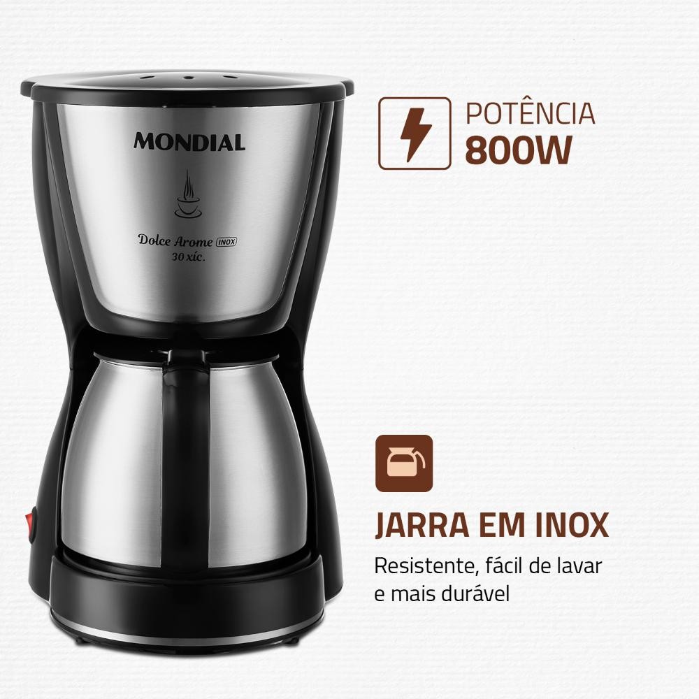 Cafeteira Elétrica Mondial Dolce Arome C-37-JI-30X Preto/Inox 127V