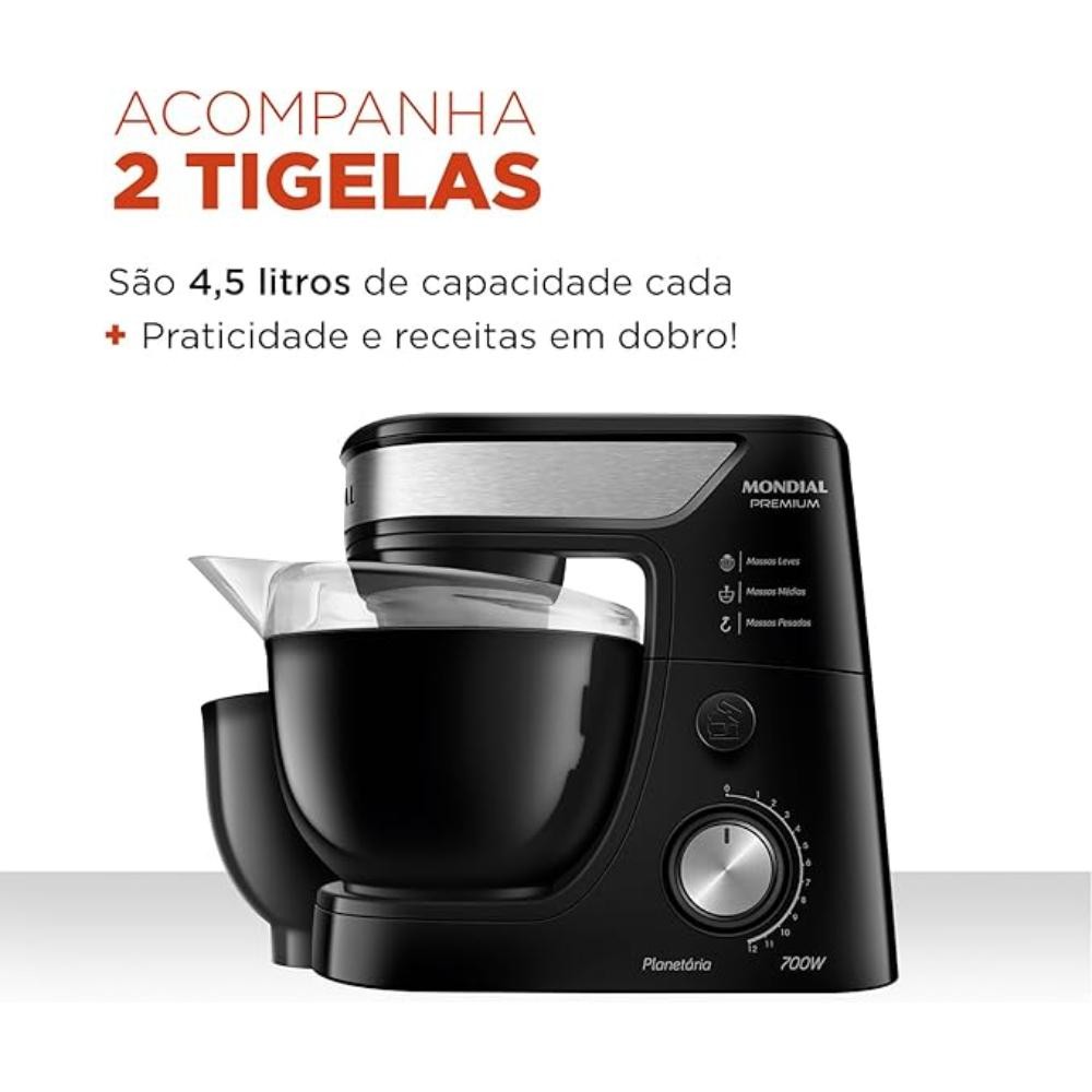 Batedeira Planetária Mondial Premium 12 Velocidades 700W Preto/Inox 127V - BP-01P-B