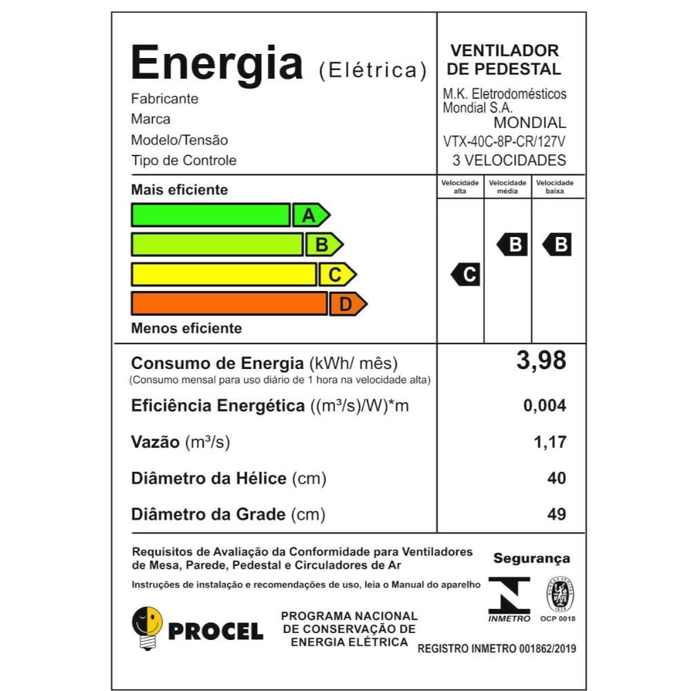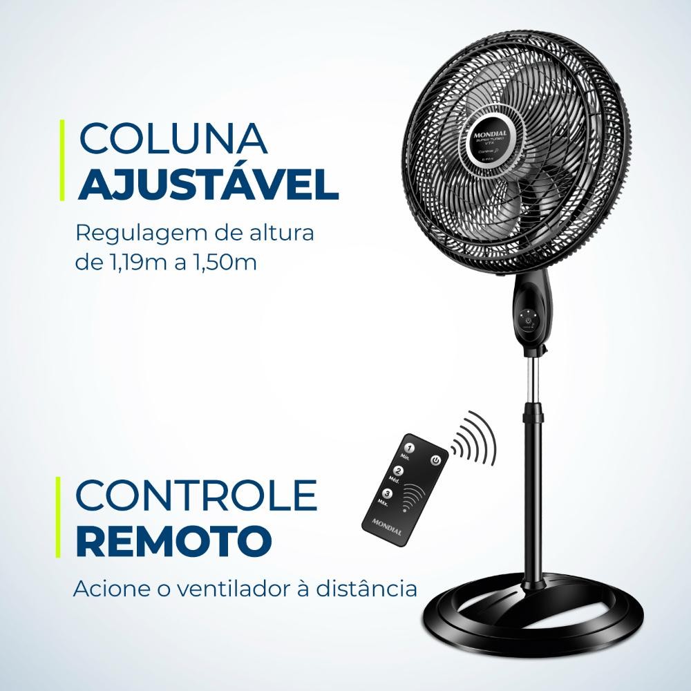 Ventilador de Coluna Mondial Super Turbo 40cm 8 Pás 140W 127V Preto/Prata - VTX-40C-8P-CR